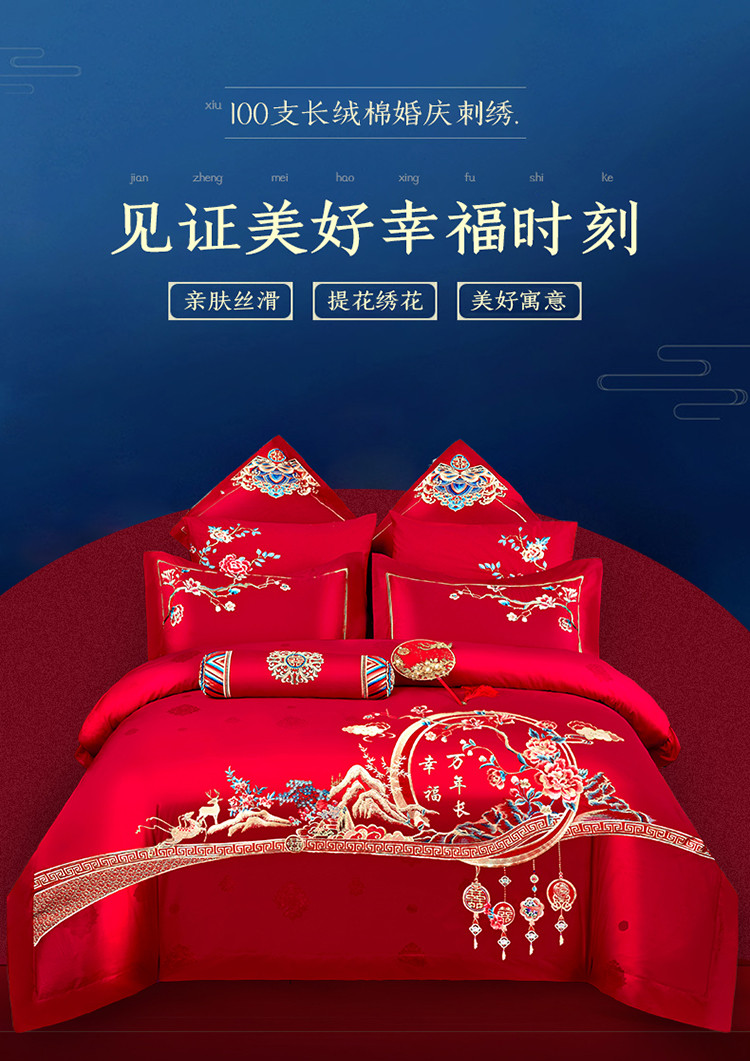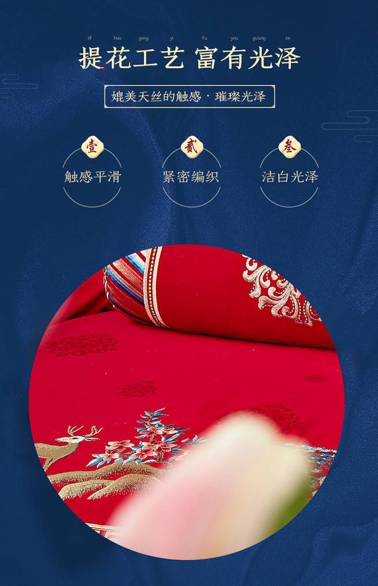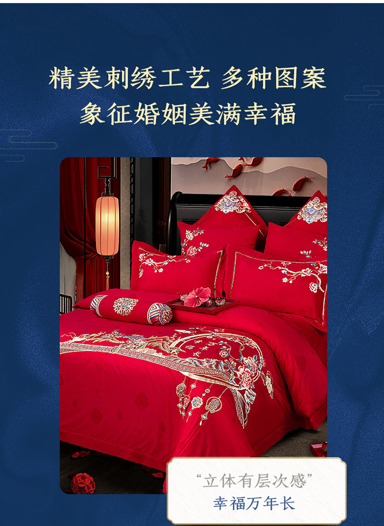 当前位置: 91家纺网 > 商品网购 > 床品套件 > 四件套 > 婚庆四件套 > 2025新120S全棉刺绣贡缎提花婚庆四件套多件套幸福万年长