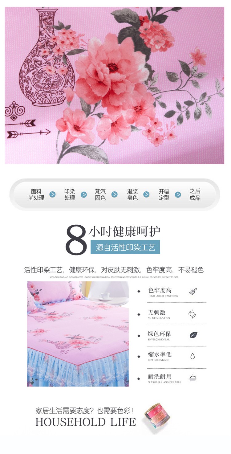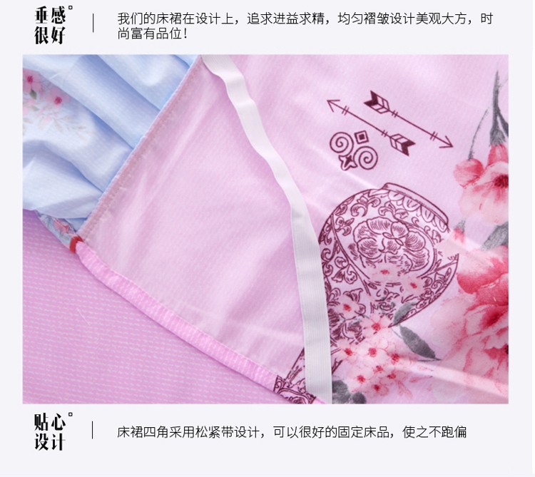 (总)艾裙海 2025新款90克磨毛夹棉绗缝床裙,粉色,大红色,米白色,深灰色,紫色,藏青色,宝蓝色,浅灰色,粉玉色,豆沙红