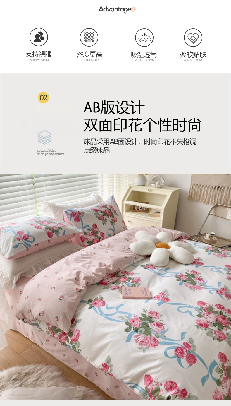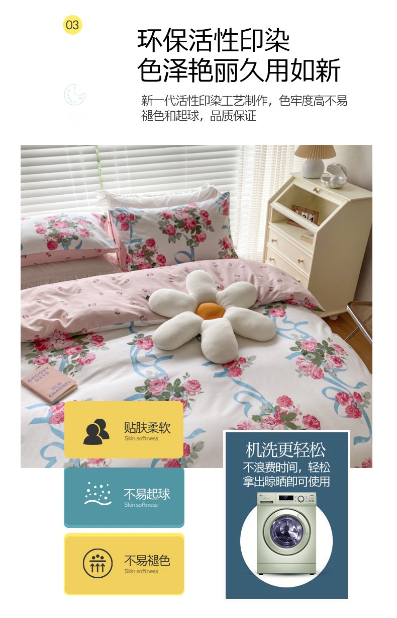 当前位置: 91家纺网 > 商品网购 > 床品套件 > 四件套 > 全棉活性四件套 > 2021新印花全棉纯棉四件套学生宿舍三件套 花香