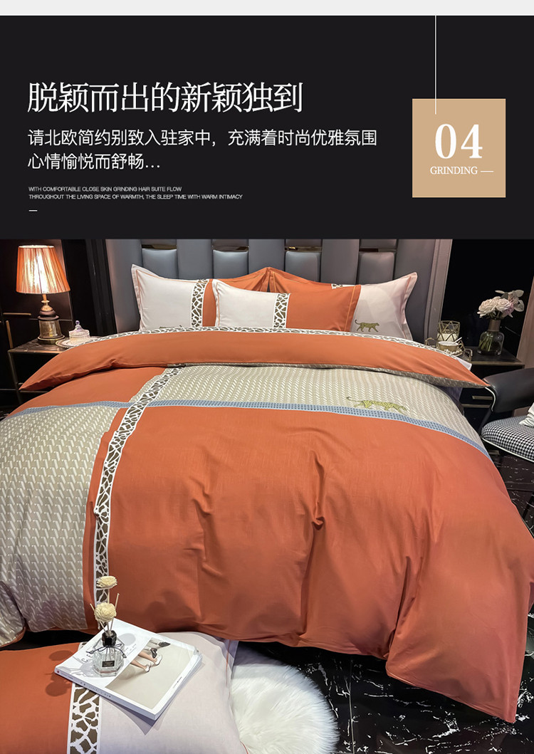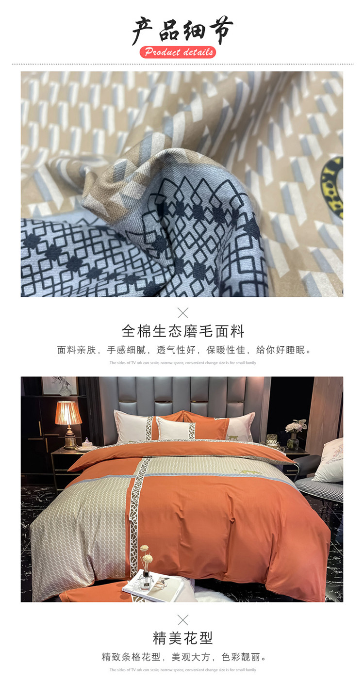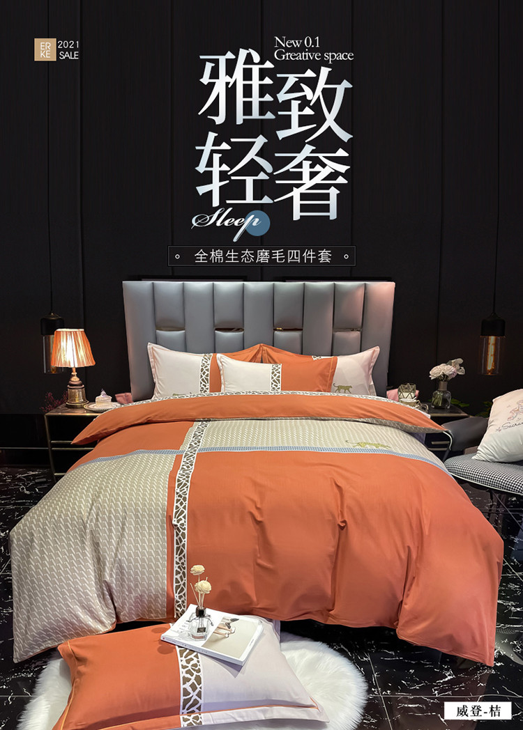 当前位置: 91家纺网 > 商品网购 > 床品套件 > 四件套 > 普通磨毛四件套 > 金爱家 2021新款大版磨毛条格简约四件套威登-桔