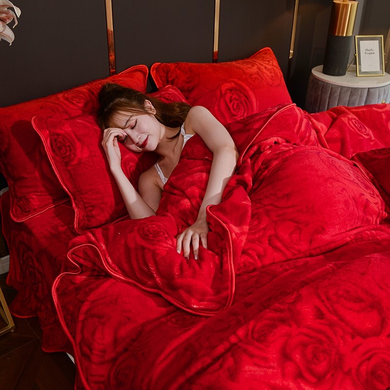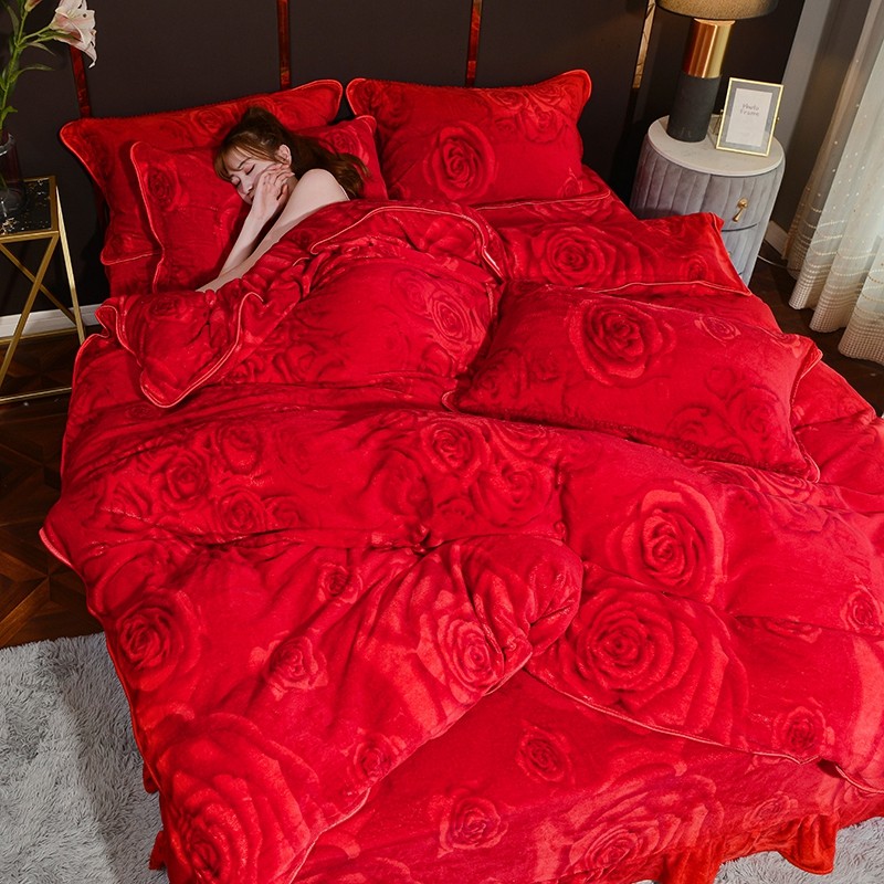 爱洛家纺2021新款金貂绒四件套 玫瑰家园