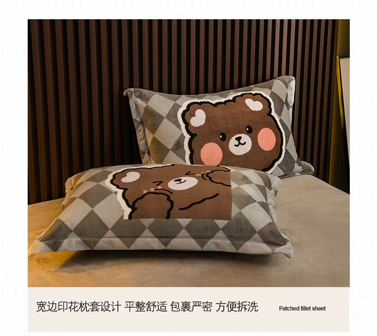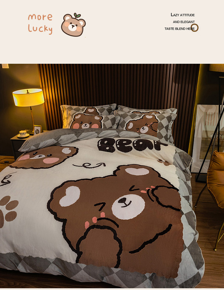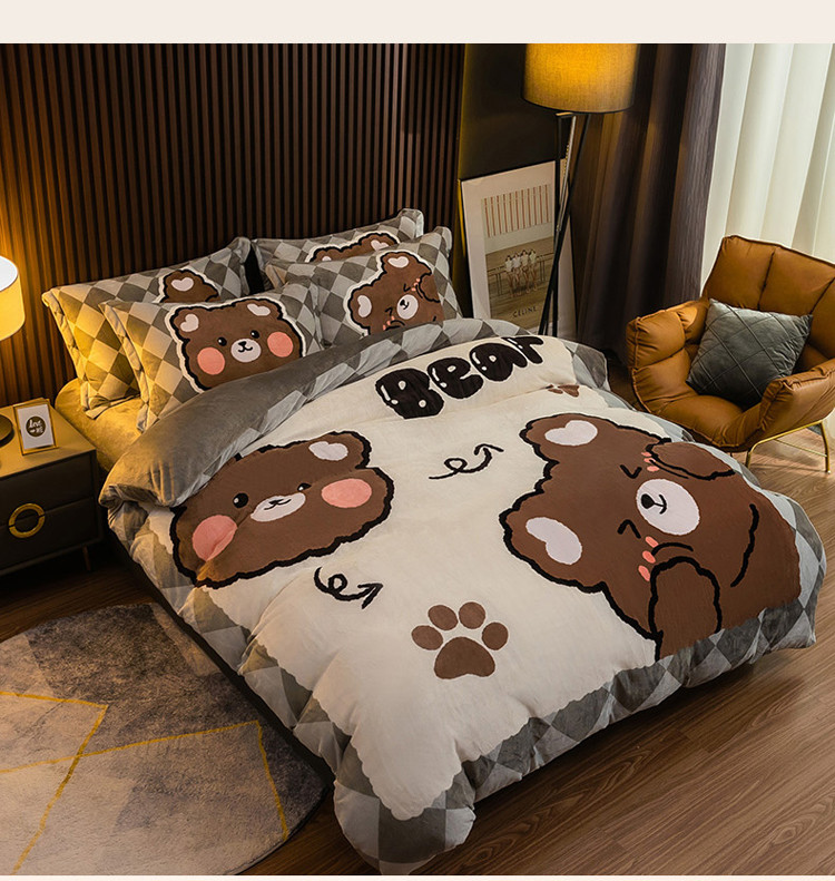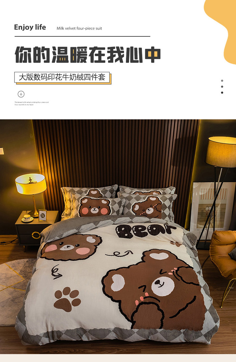 寐居 2021新款大版数码印花牛奶绒四件套 害羞熊