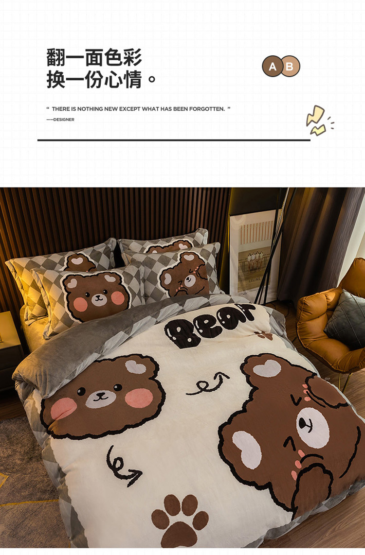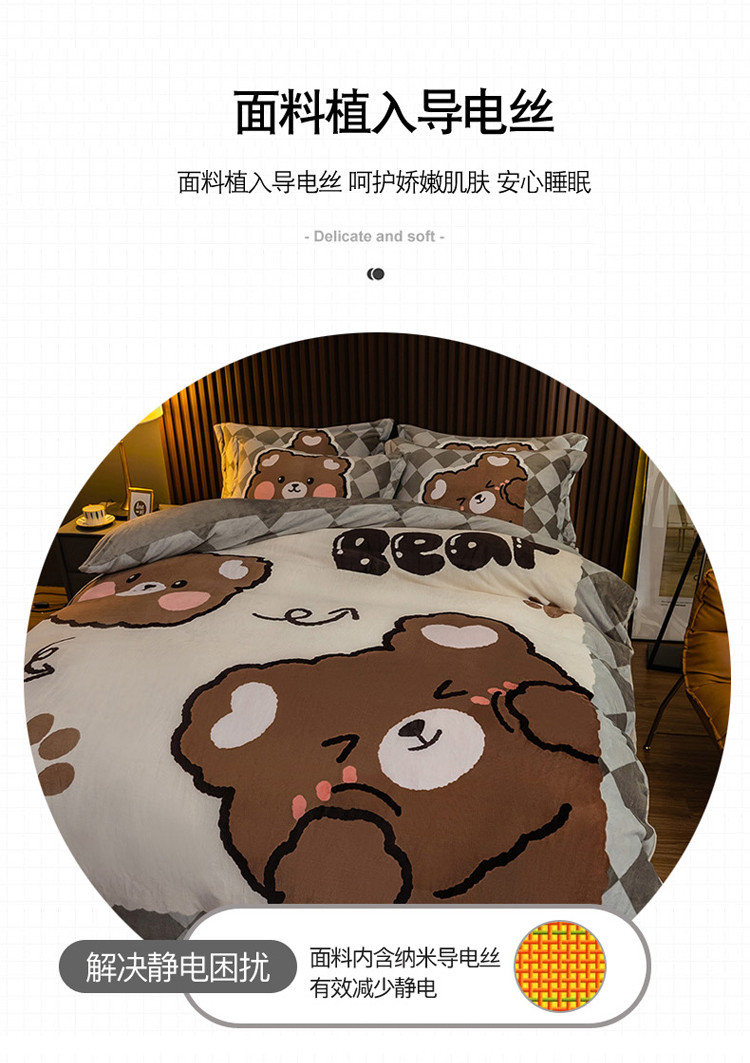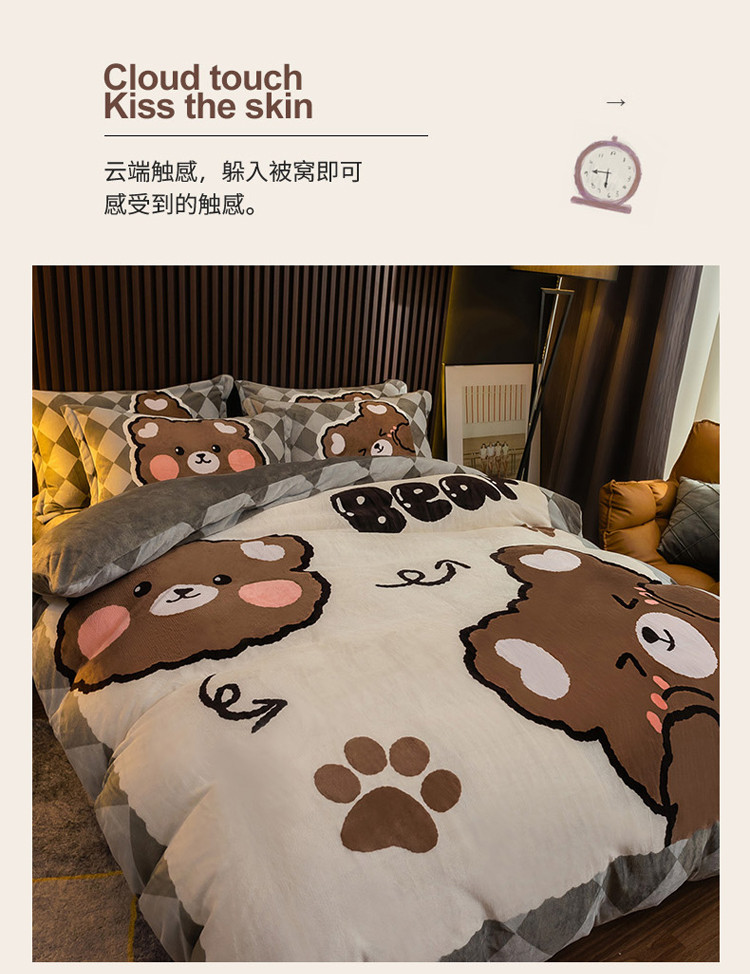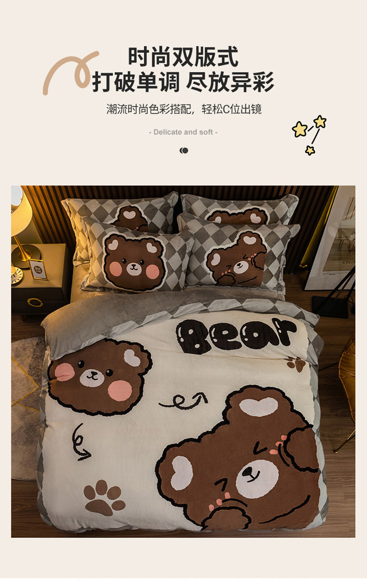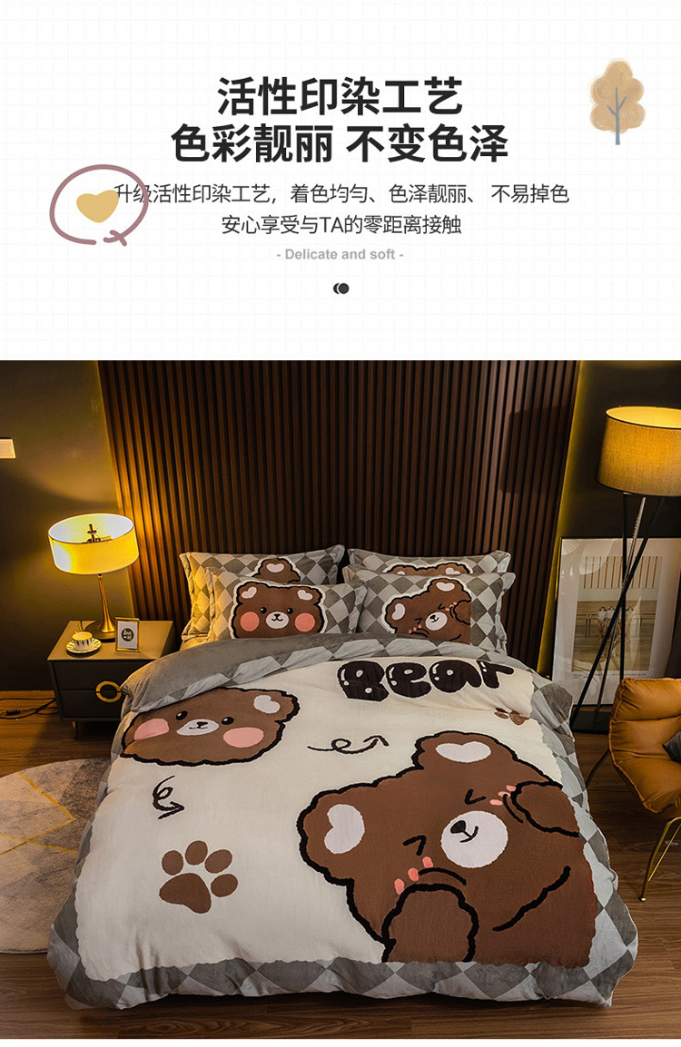 商品名称:寐居 2021新款大版数码印花牛奶绒四件套 害羞熊