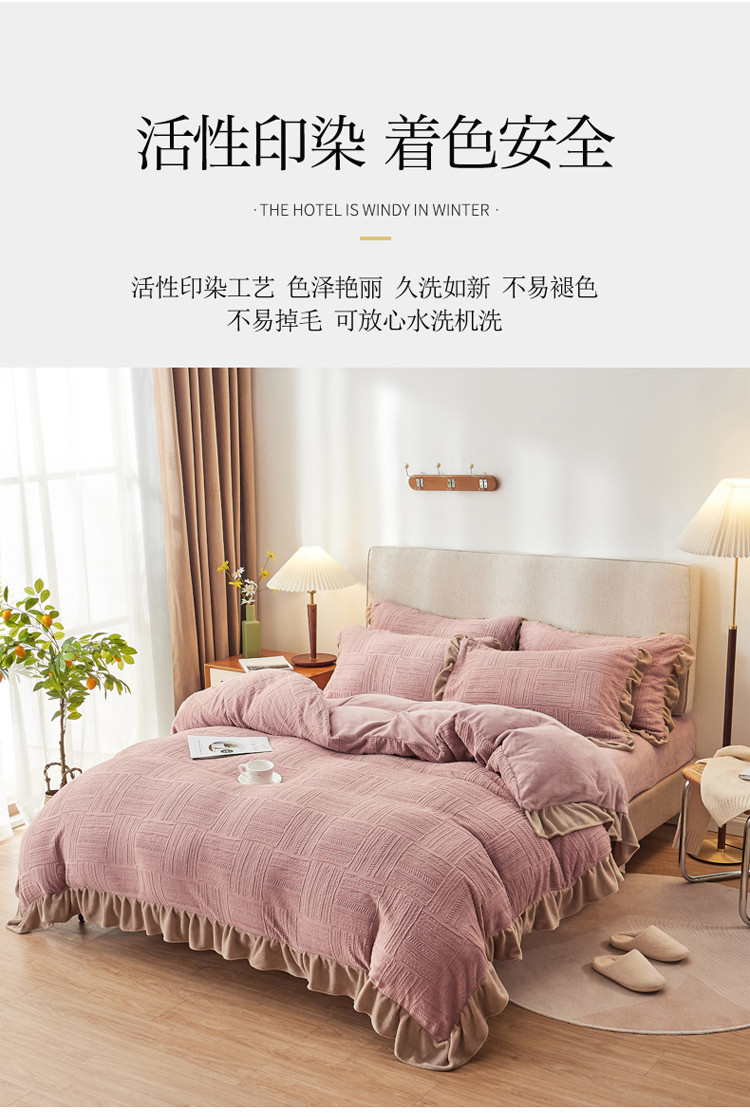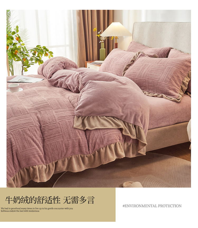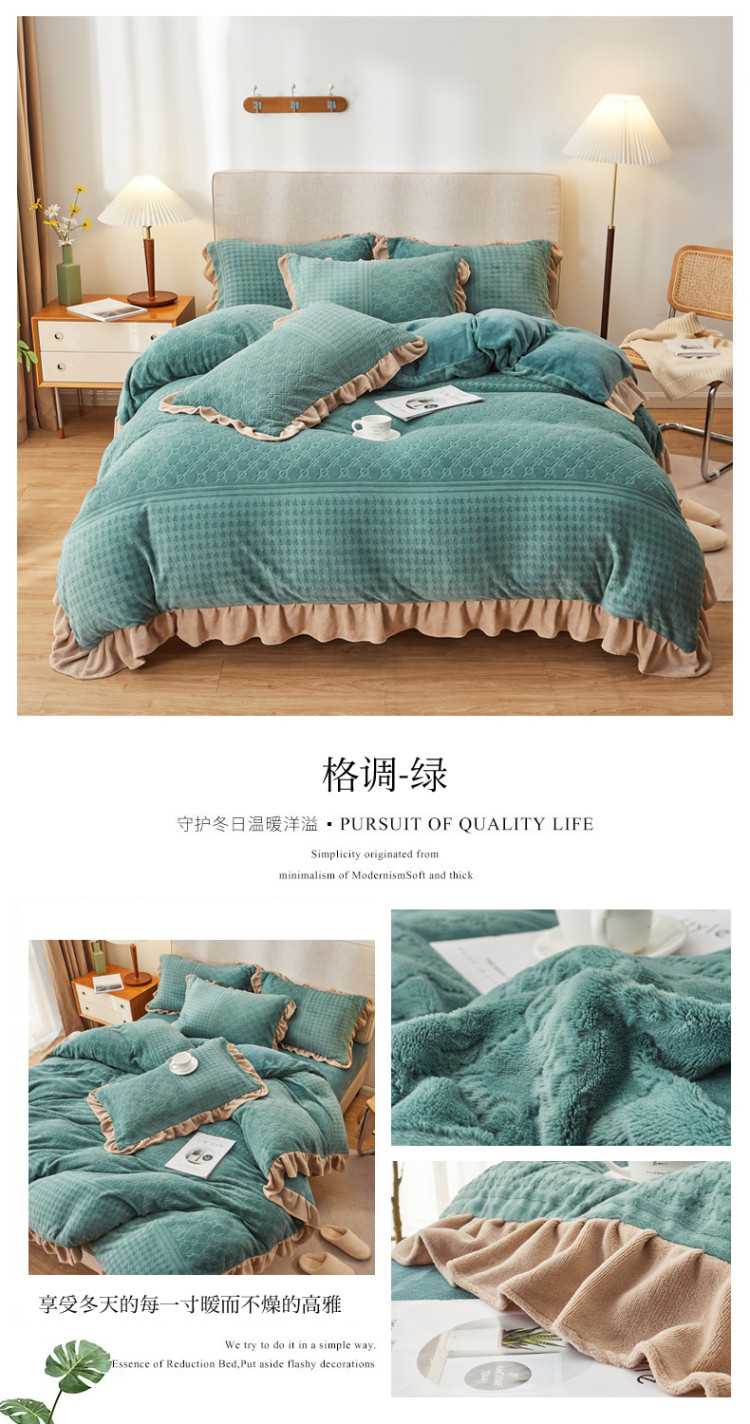 当前位置: 91家纺网 > 商品网购 > 床品套件 > 四件套 > 牛奶绒四件套 > 寐居2021新款韩版立体剪花牛奶绒四件套 格调-绿