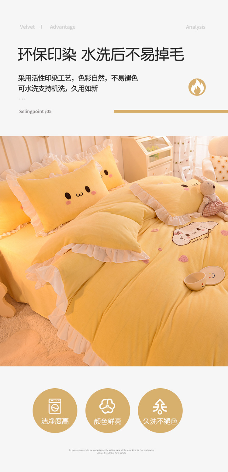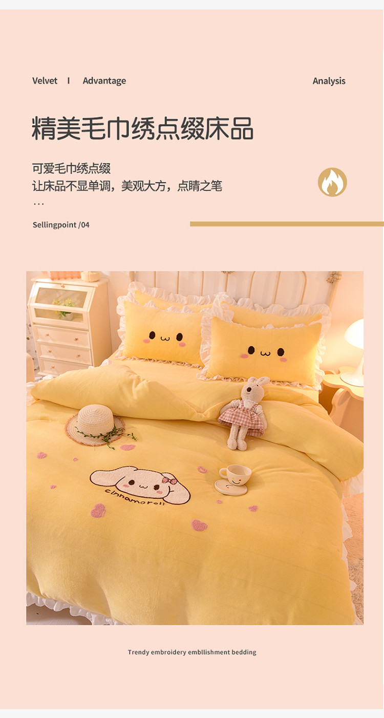 当前位置: 91家纺网 > 商品网购 > 床品套件 > 四件套 > 牛奶绒四件套 > 2021 梦之岛 新款牛奶绒毛巾绣四件套 可爱兔-黄