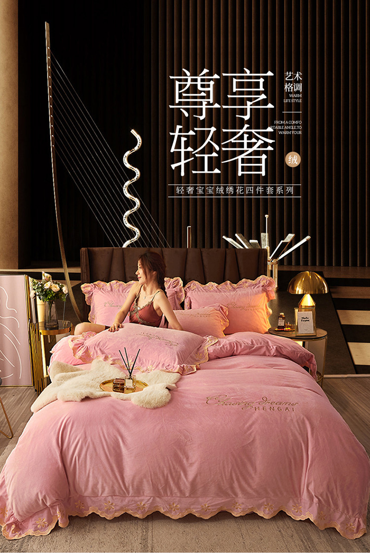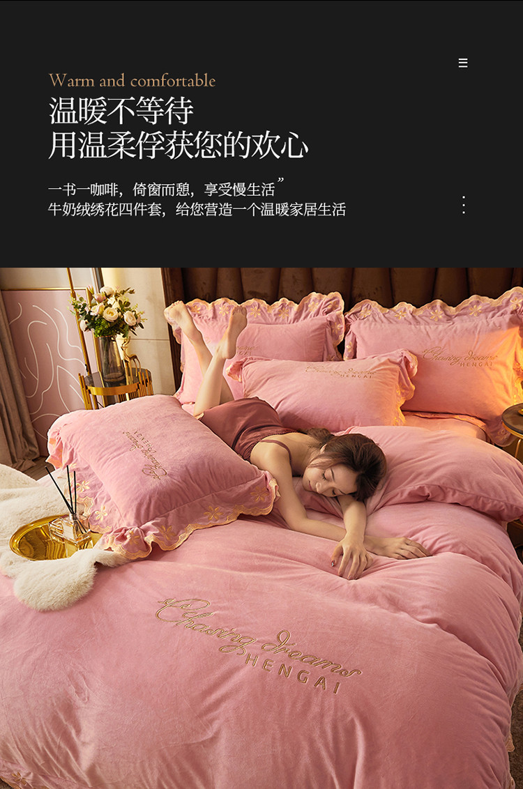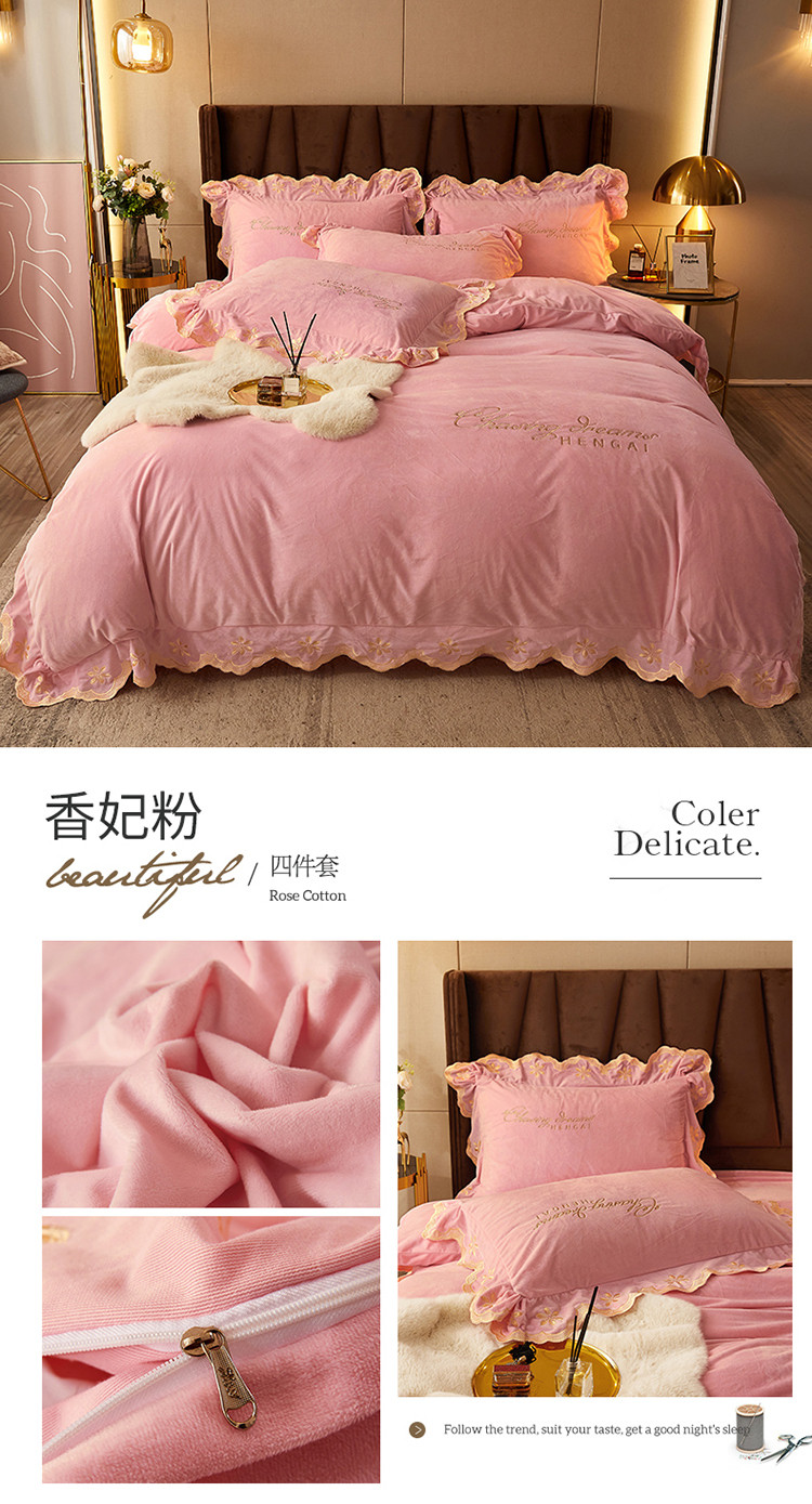 当前位置: 91家纺网 > 商品网购 > 床品套件 > 四件套 > 宝宝绒四件套 > 恒爱 2021新款宝宝绒四件套梦想生活系列 香妃粉