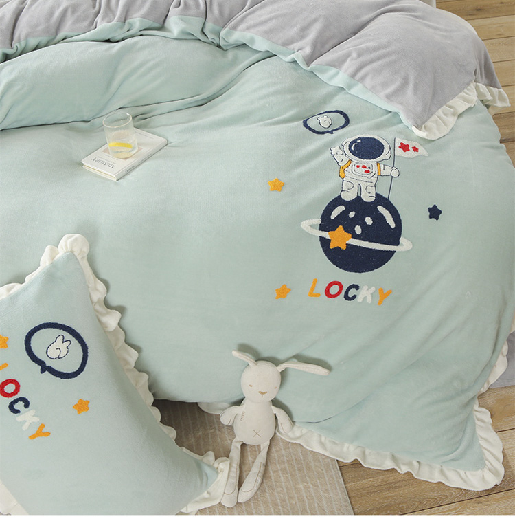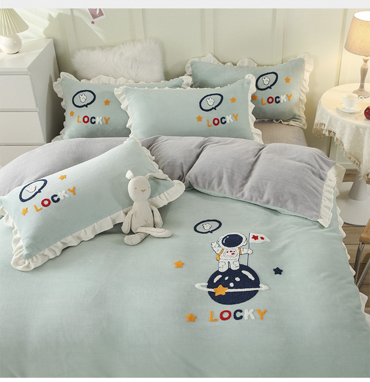沐辰 2021新款韩版毛巾绣加厚牛奶绒四件套 太空人-绿