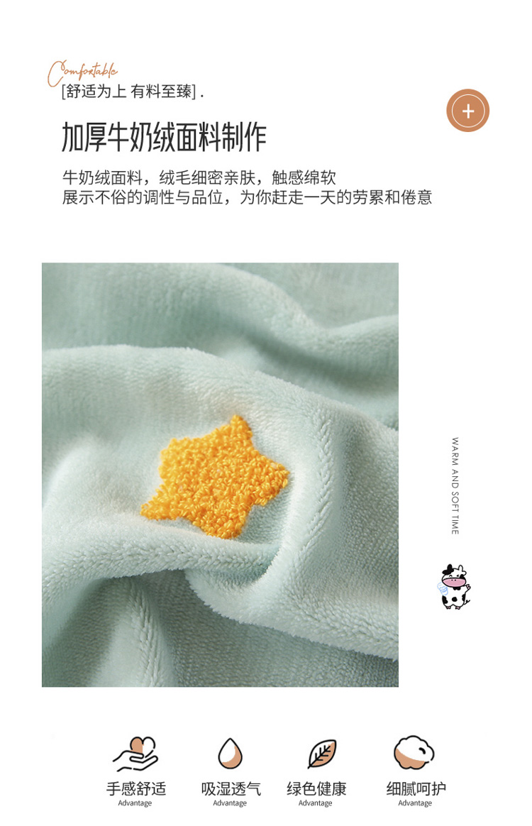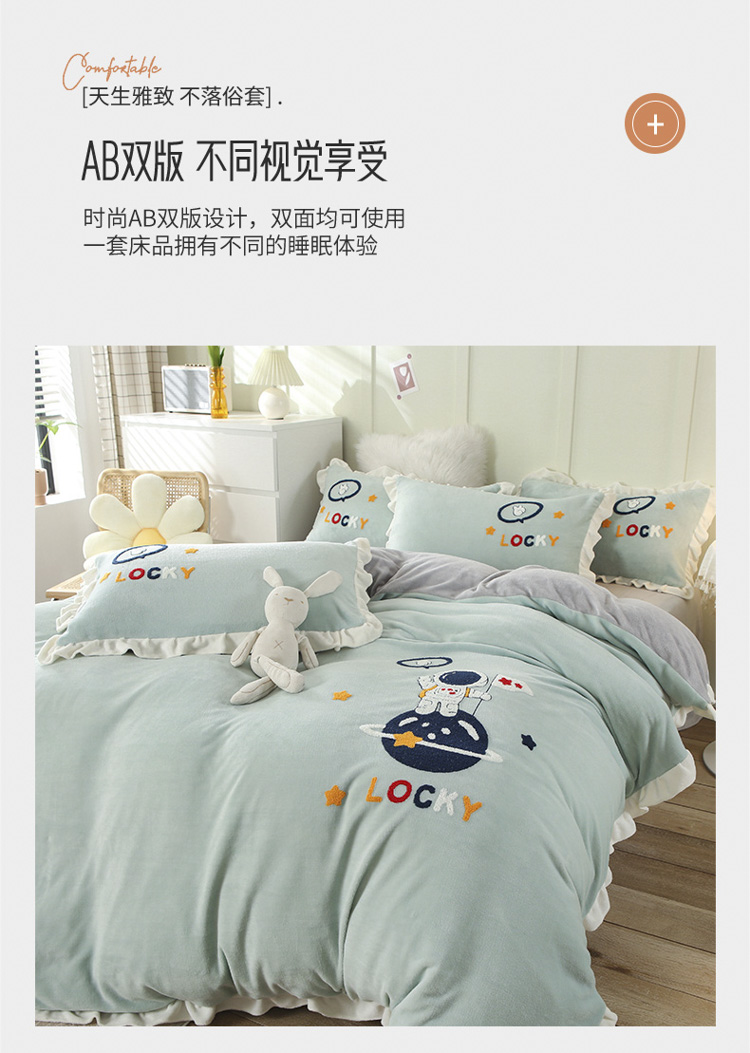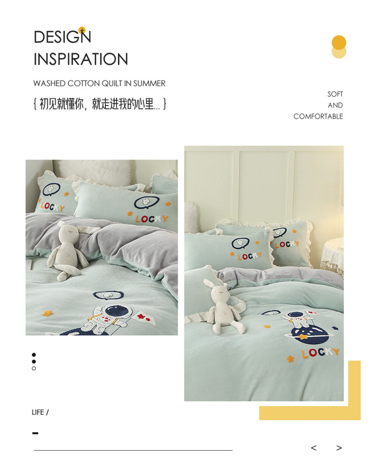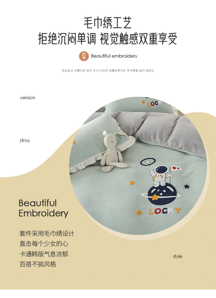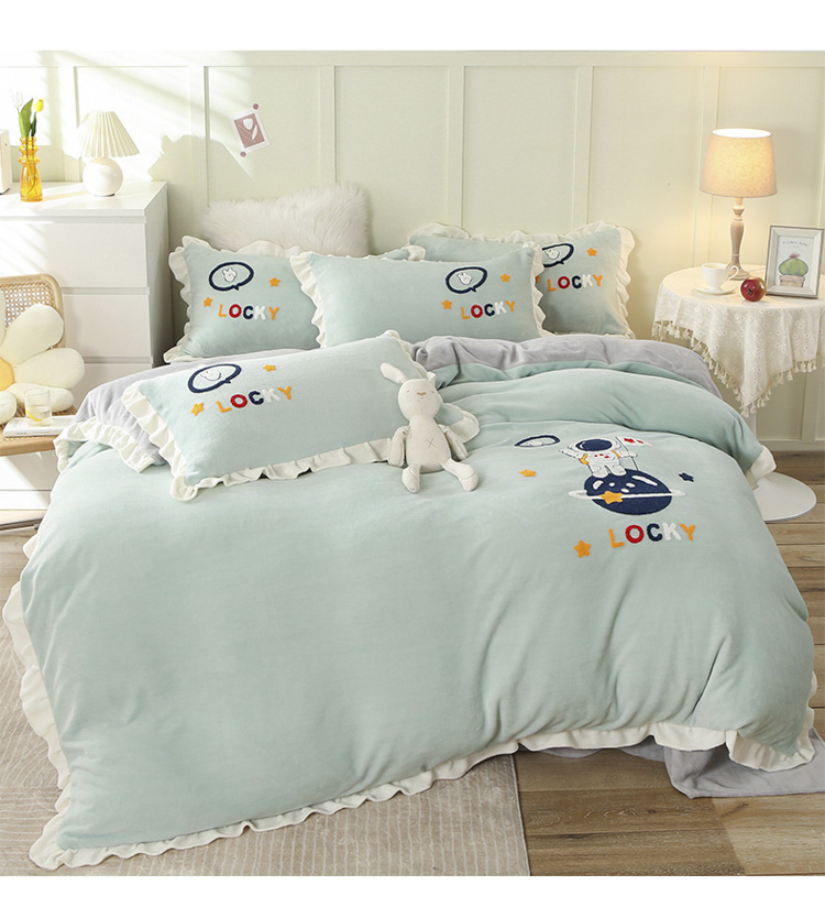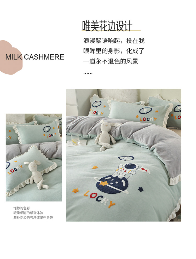 商品名称:沐辰 2021新款韩版毛巾绣加厚牛奶绒四件套 太空人-绿
