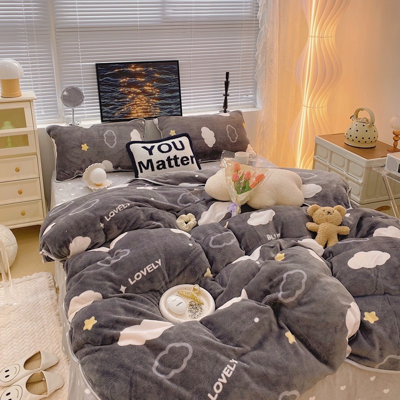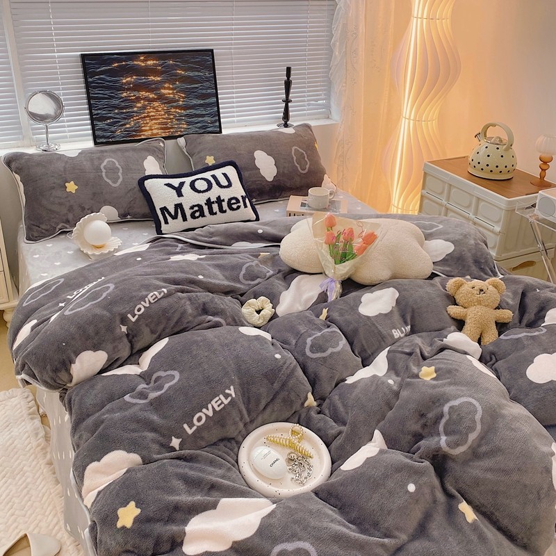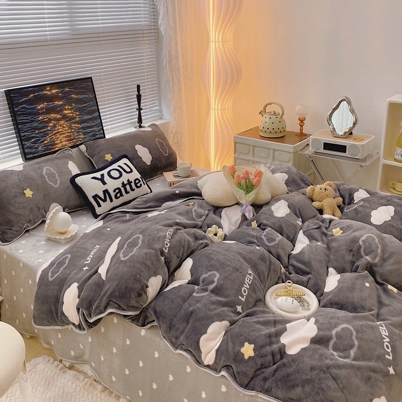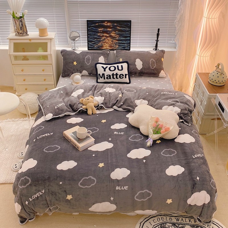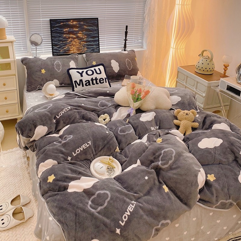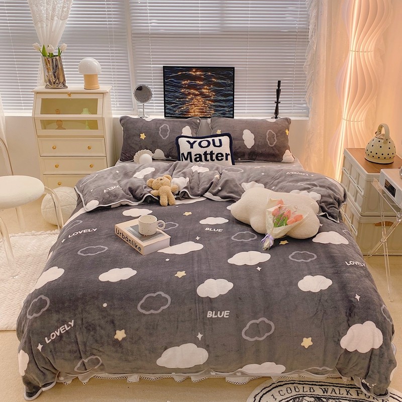 顾里家纺2021新款ins韩国高端保暖牛奶绒四件套治 愈云朵