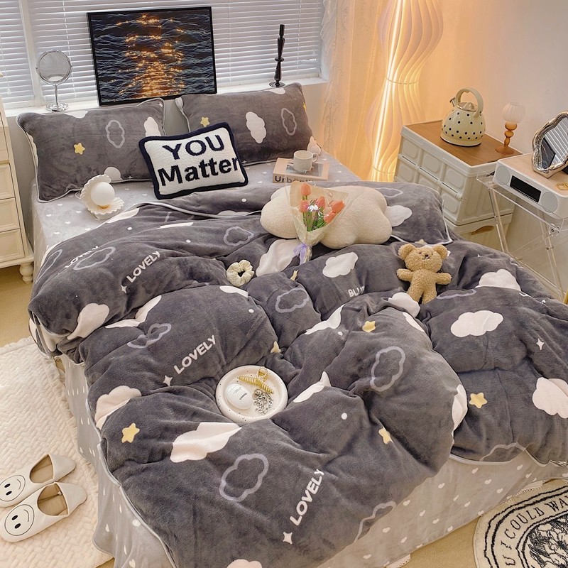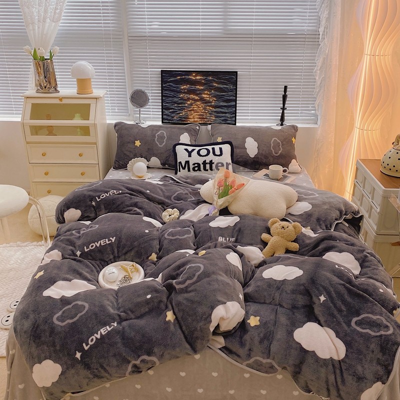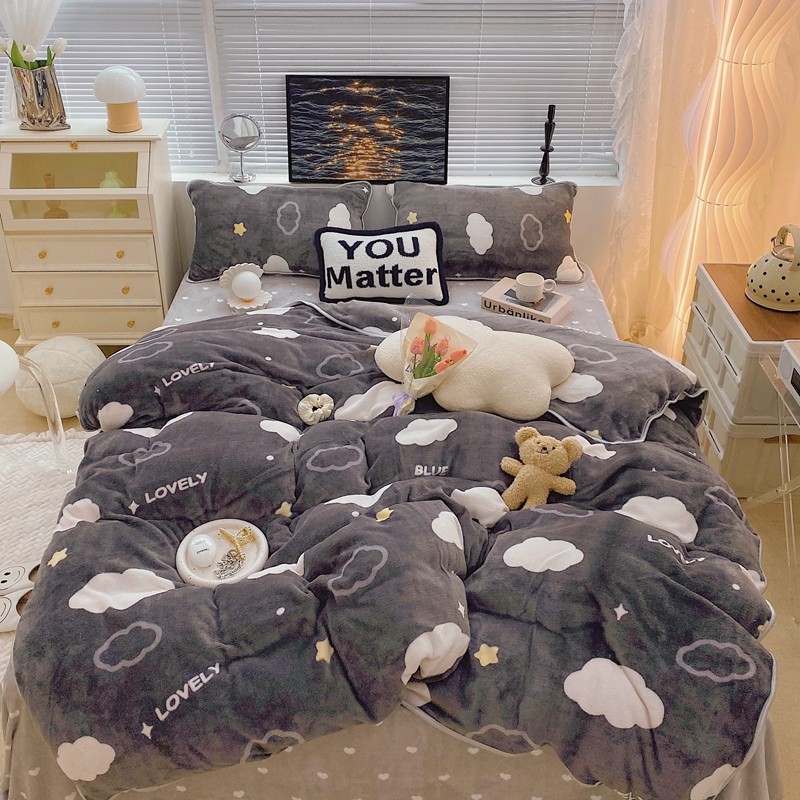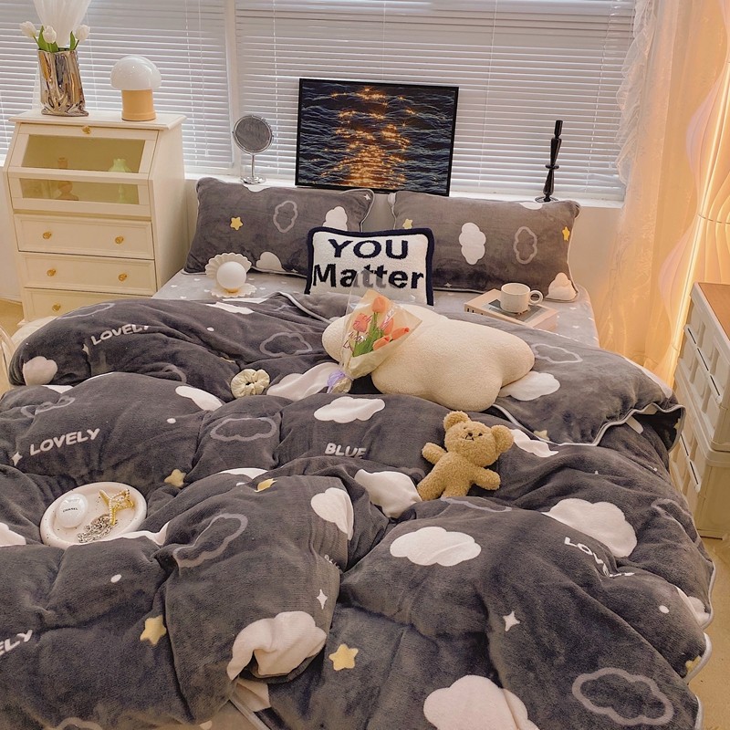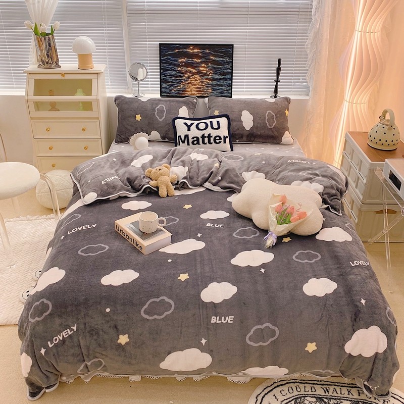 商品名称:顾里家纺2021新款ins韩国高端保暖牛奶绒四件套治 愈云朵