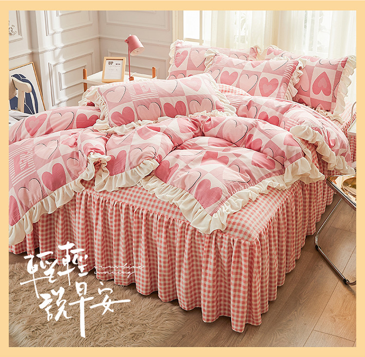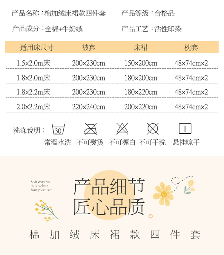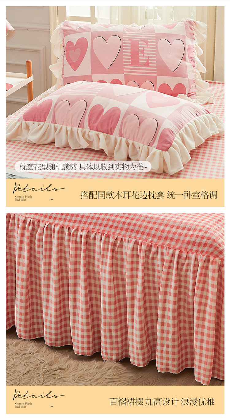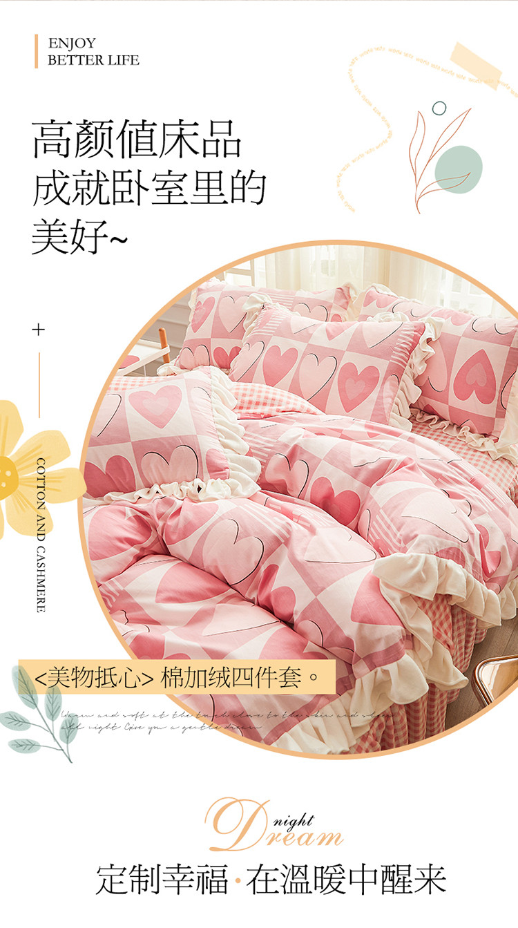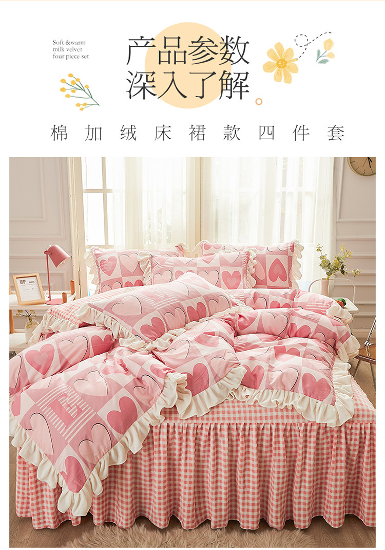 商品名称:宜凡家纺 2021新款棉加绒印花床裙四件套 心愿
