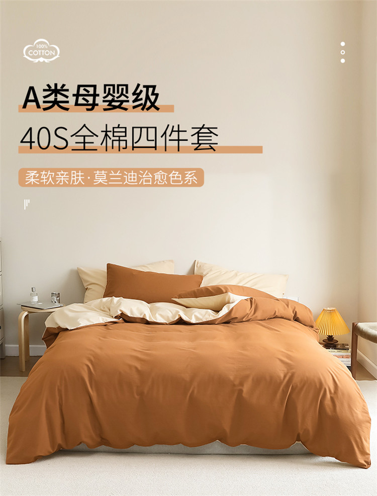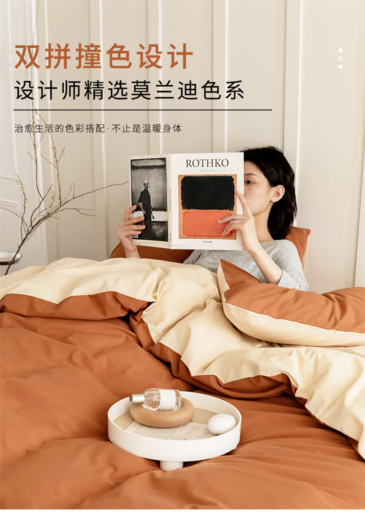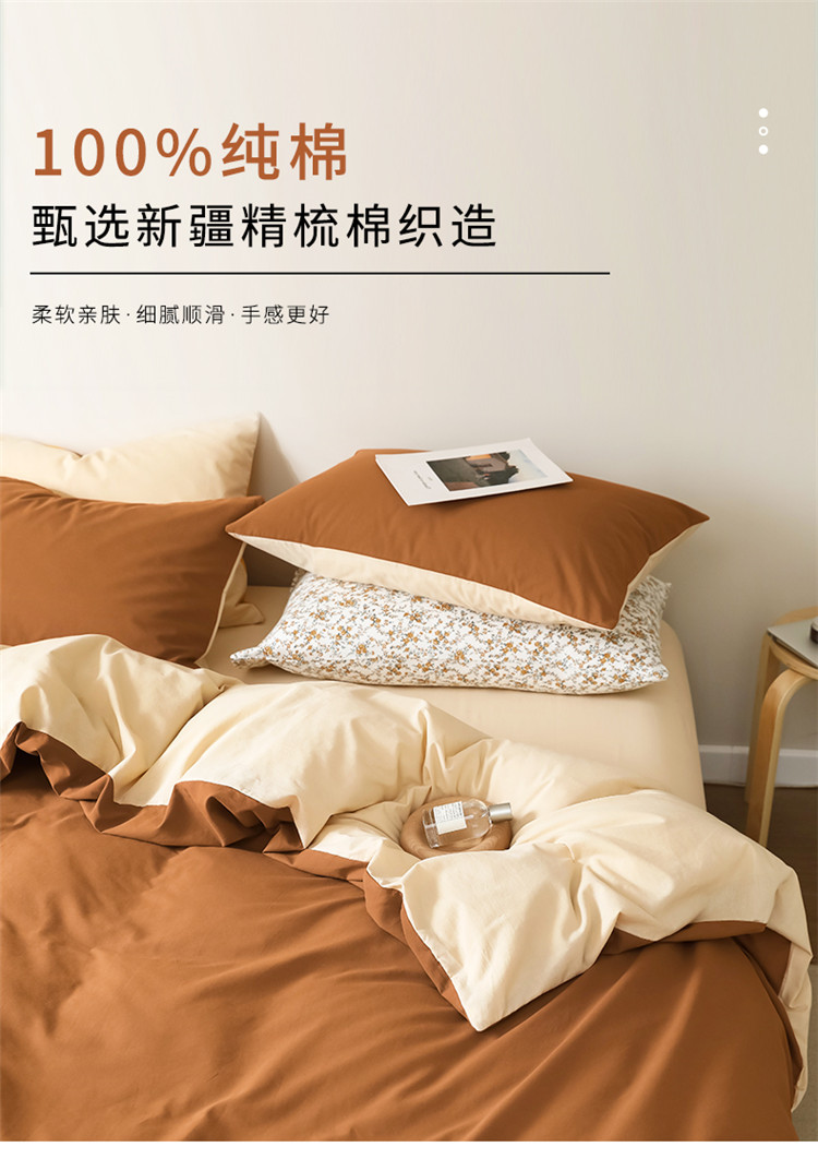 当前位置: 91家纺网 > 商品网购 > 床品套件 > 四件套 > 全棉普通四件套 > 寐眠 2021新款A类40支全棉撞色四件套 焦糖+奶茶