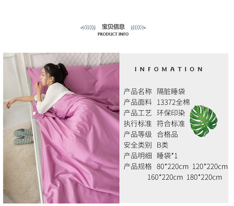 商品名称:怡家居 全棉隔脏睡袋 纯色紫色