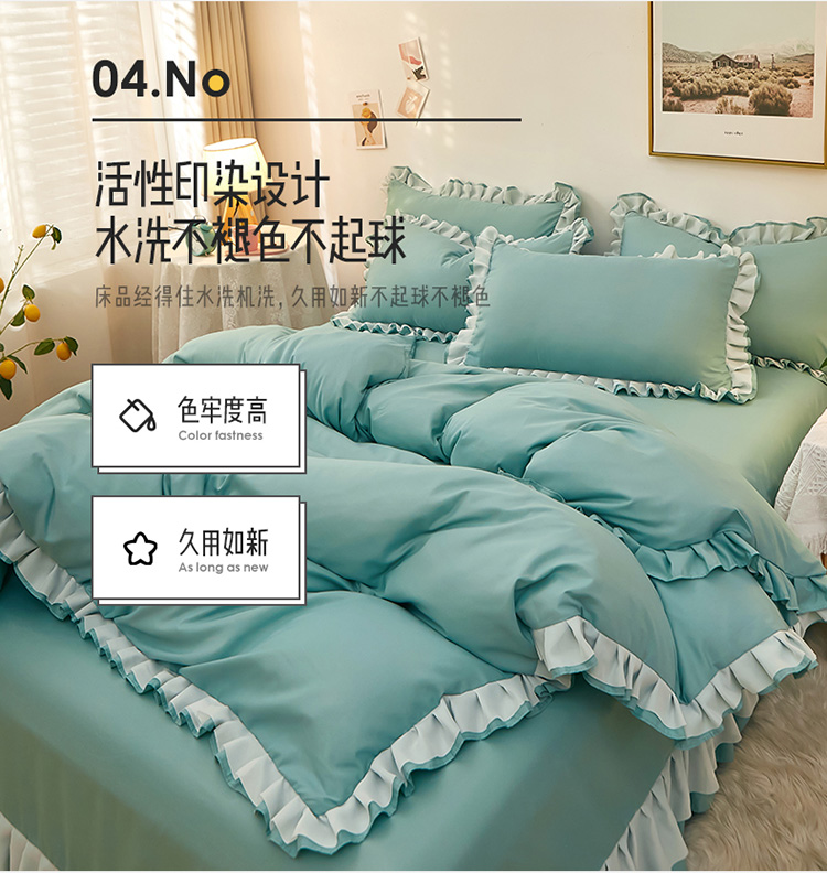 商品名称:莉莉安 2025新款韩版公主风亲肤四件套-爱恋系列 爱恋-清水绿