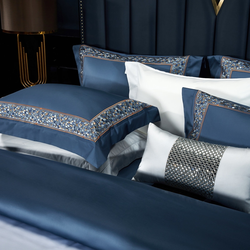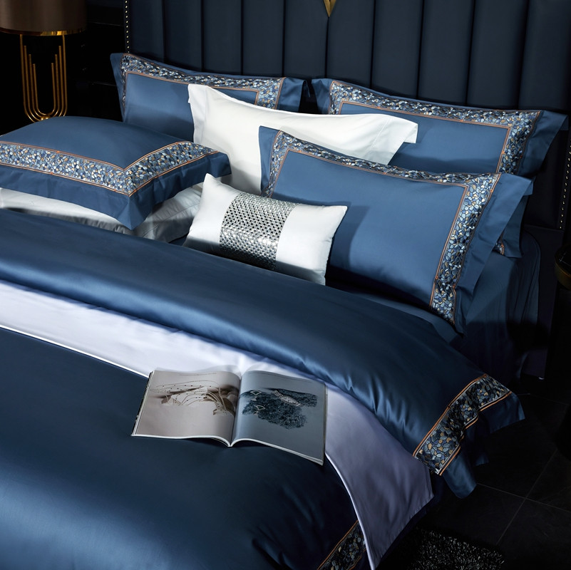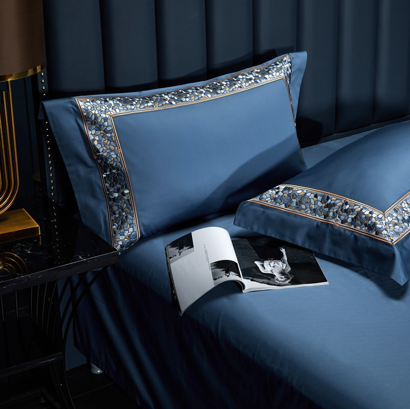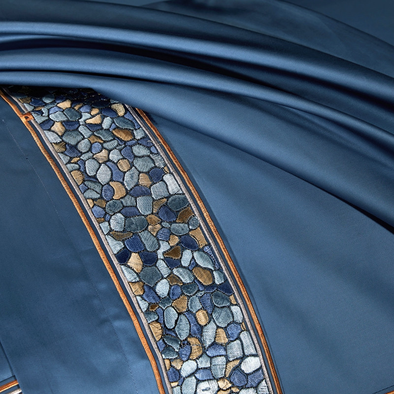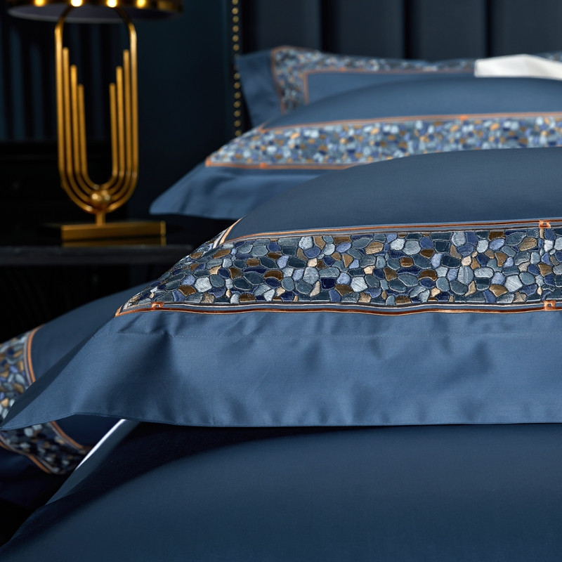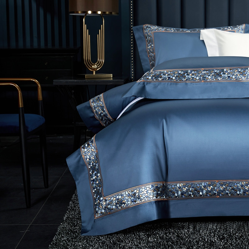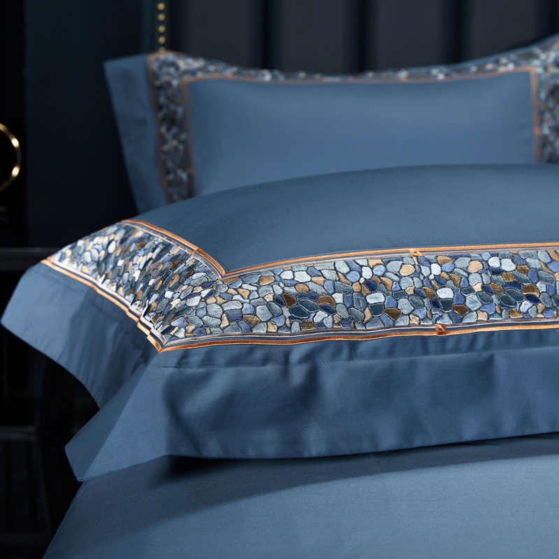 缔缦家纺 2022新款100s澳棉刺绣系列四件套-布瑞琪 宾利蓝