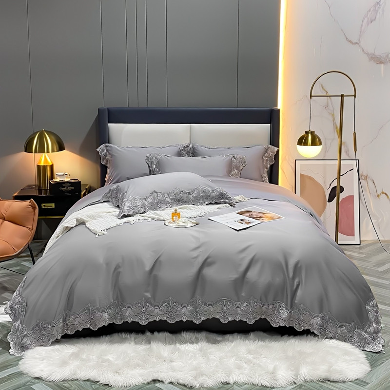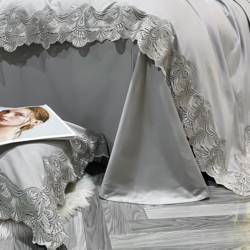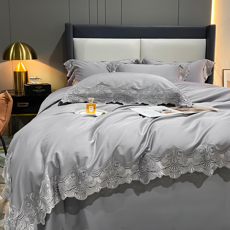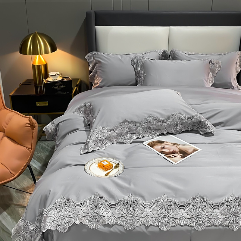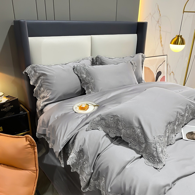 缔缦家纺 2022新款100支长绒棉蕾丝四件套-夏丽尔公主 银灰