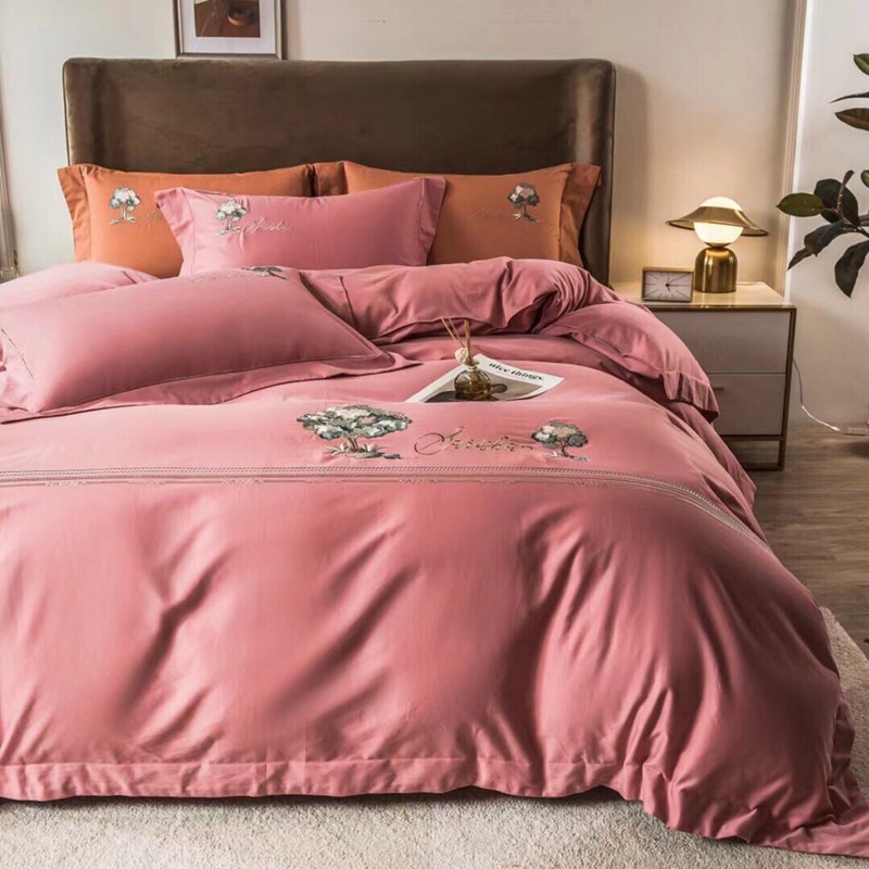 (总)玖玖爱家纺 2023新款120支贡缎长绒棉刺绣梦柔系列四件套,梦柔-香槟金,梦柔-香橙桔,梦柔-高级灰,梦柔-水蓝,梦柔-芙蓉玉