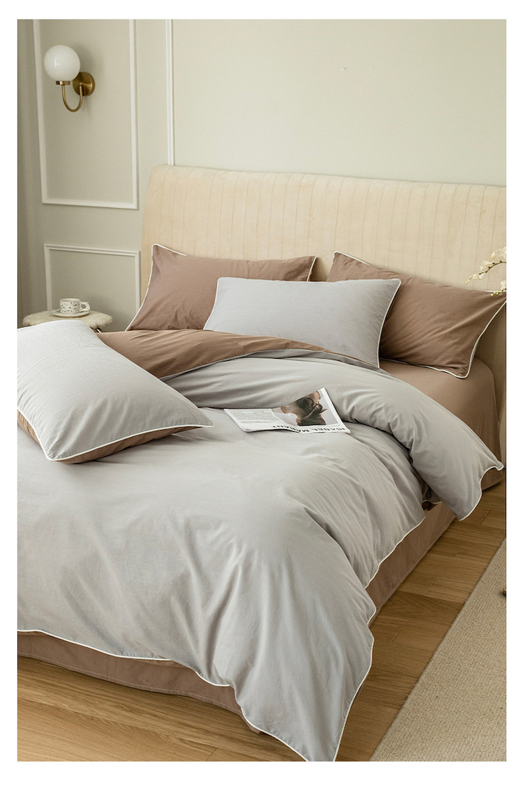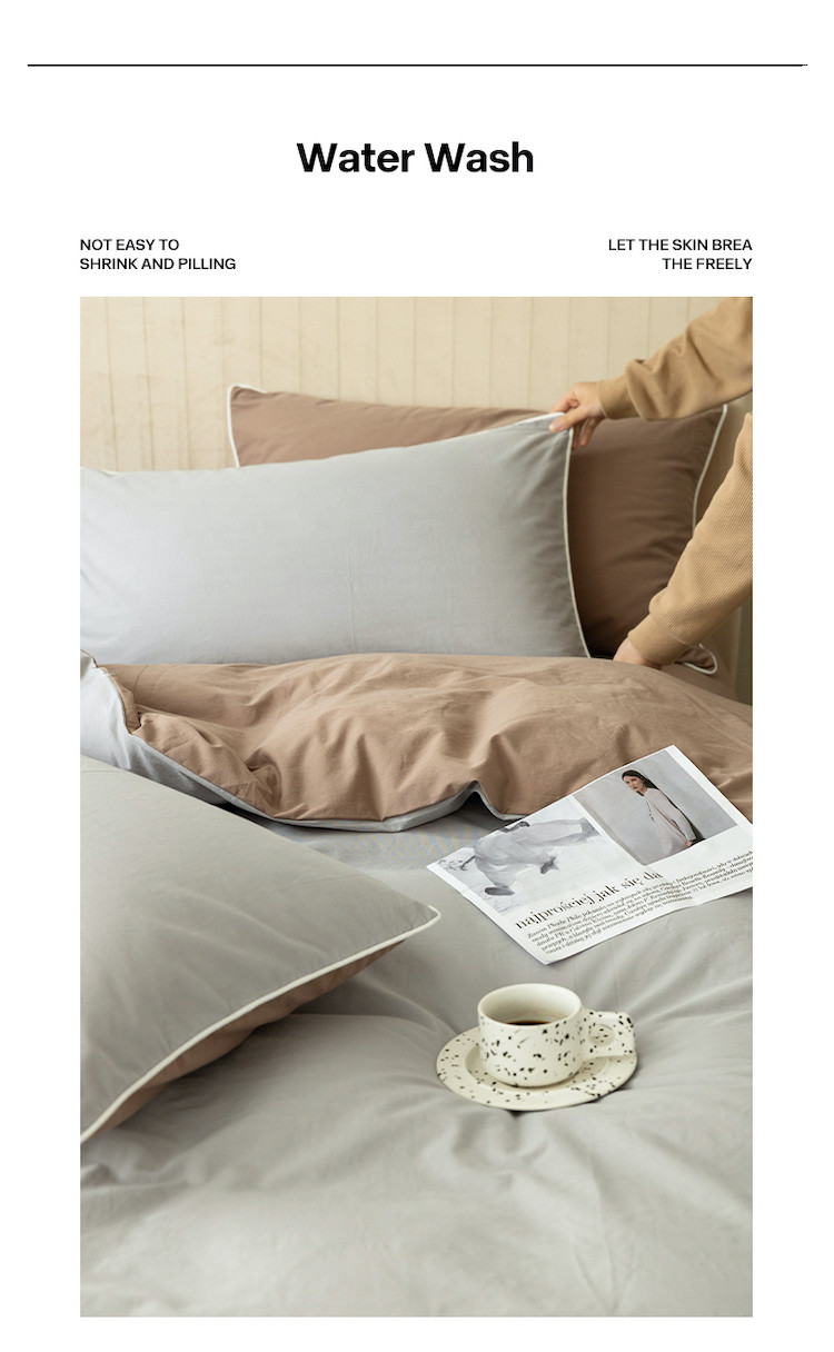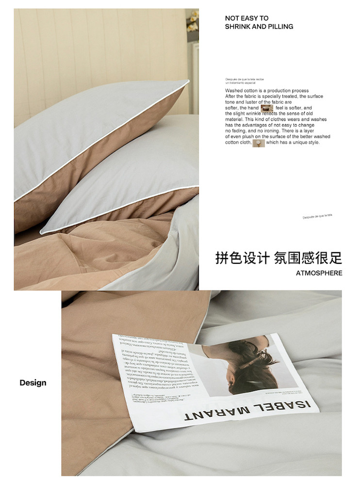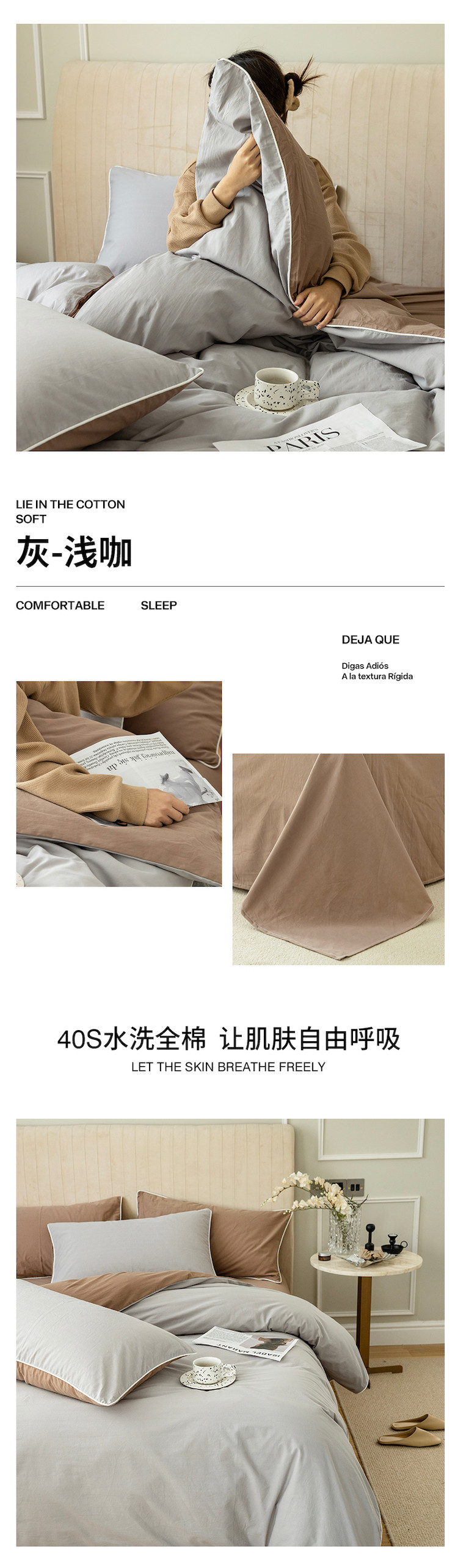 当前位置: 91家纺网 > 商品网购 > 床品套件 > 四件套 > 水洗棉四件套 > 万盛家纺 2025新款全棉纯棉水洗棉拼色款四件套 灰-浅咖