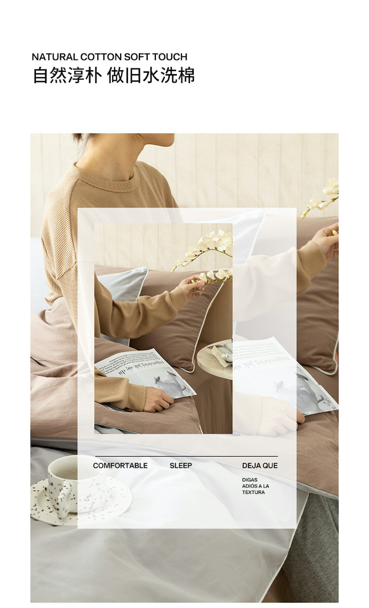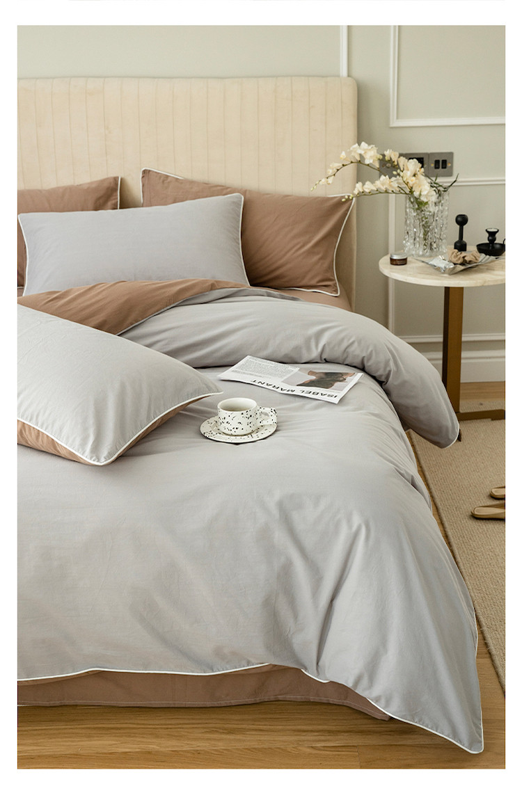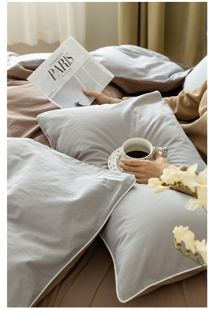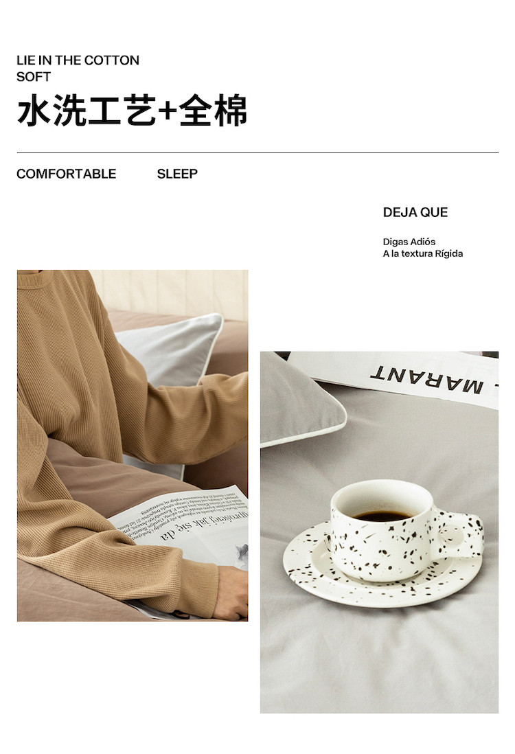 当前位置: 91家纺网 > 商品网购 > 床品套件 > 四件套 > 水洗棉四件套 > 万盛家纺 2025新款全棉纯棉水洗棉拼色款四件套 灰-浅咖