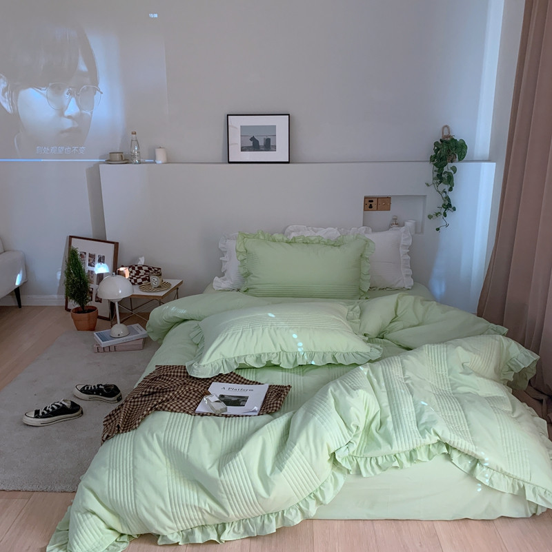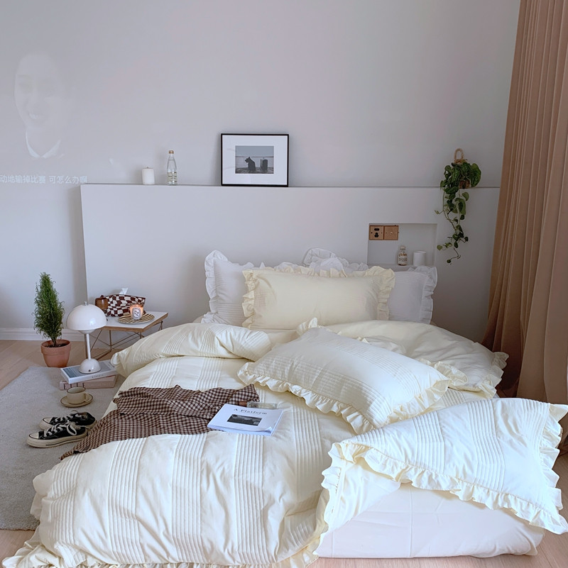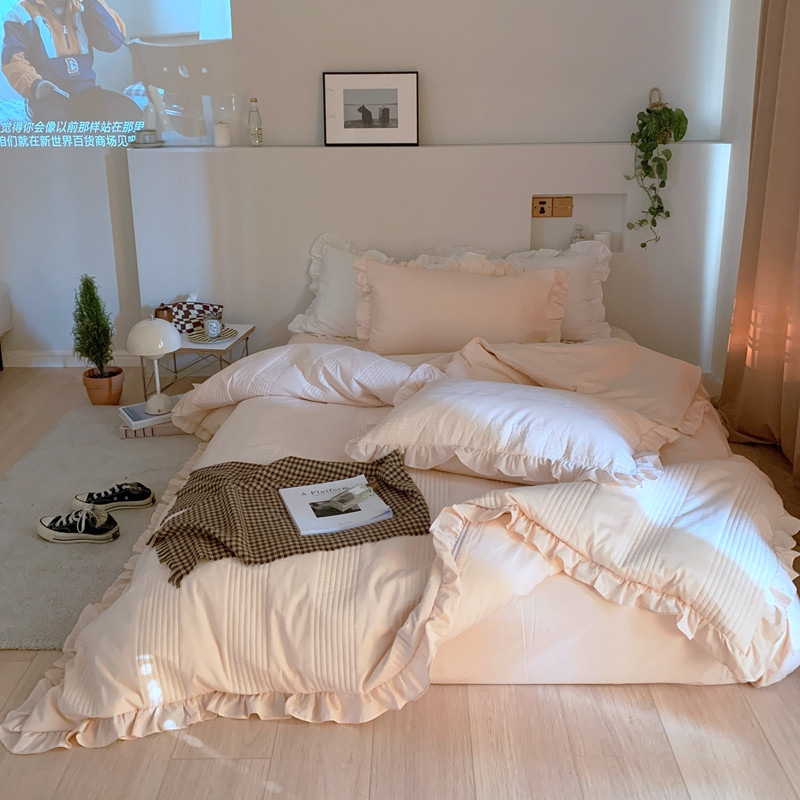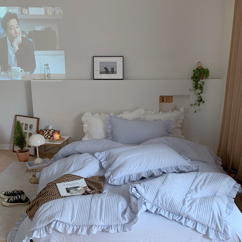 (总)六巷胡同 2026春夏新款INS博主风韩系小碎花全棉花边款四件套,南乔,贝芮,浅栀,苏汐,予椿,允夏,知棠