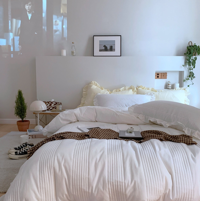 (总)六巷胡同 2025新款韩国INS博主同款绗缝水洗纱夏被四件套,海盐蓝,迷雾灰,奶酪黄,牛乳白,软糖粉,元气绿