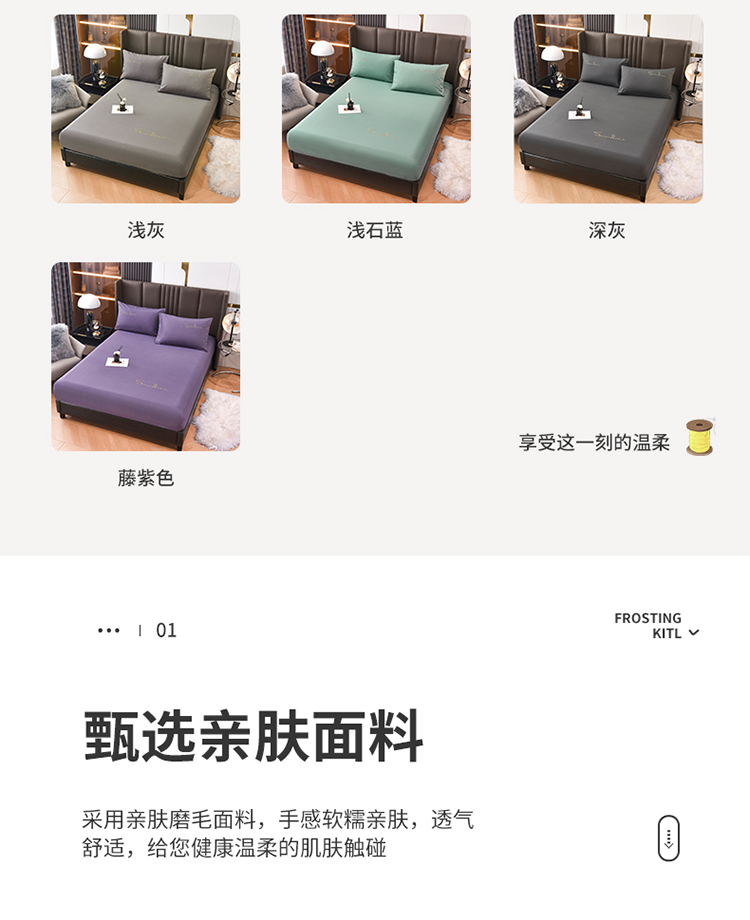 (总)七仙女家纺 2025新款全棉磨毛床单,高奢紫,活力灰,时光灰,时光米,香氛咖