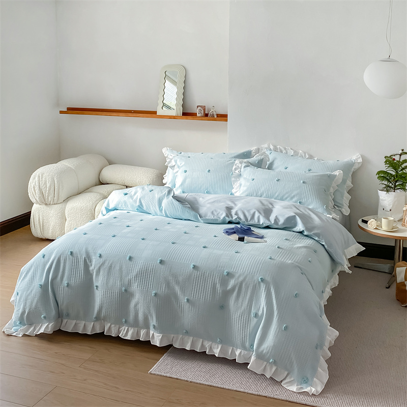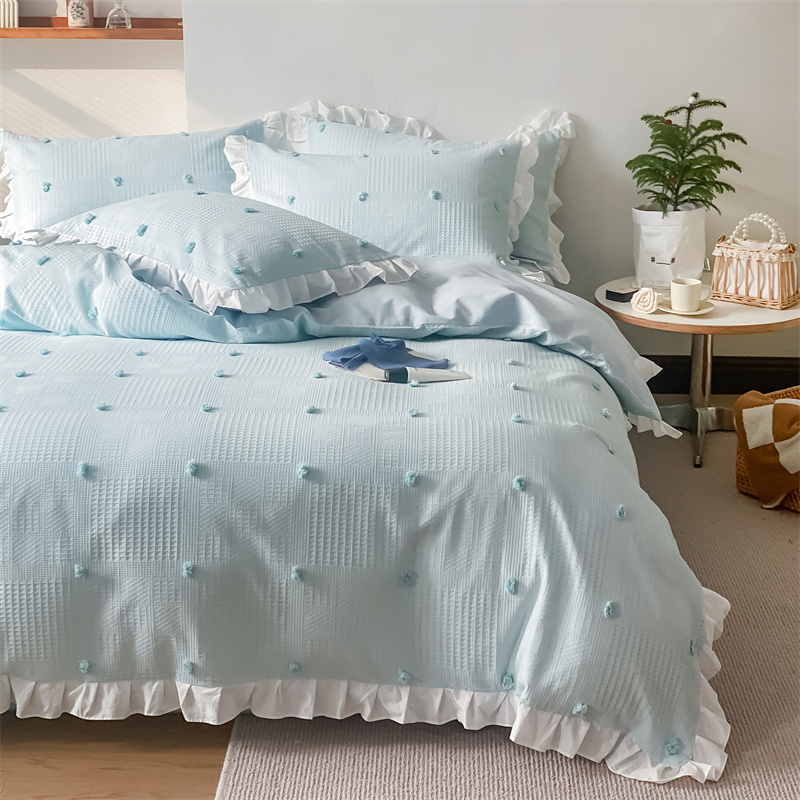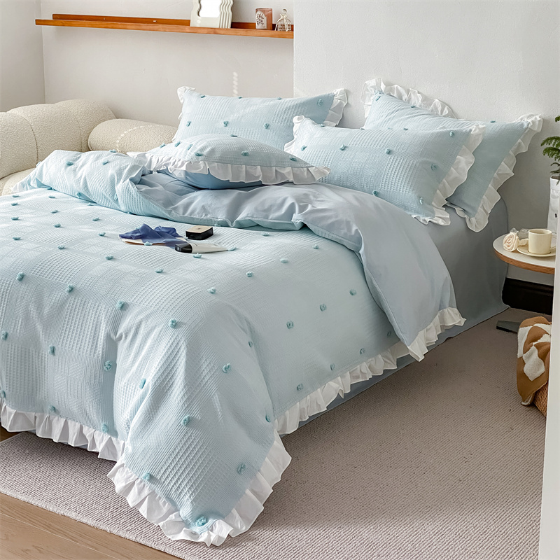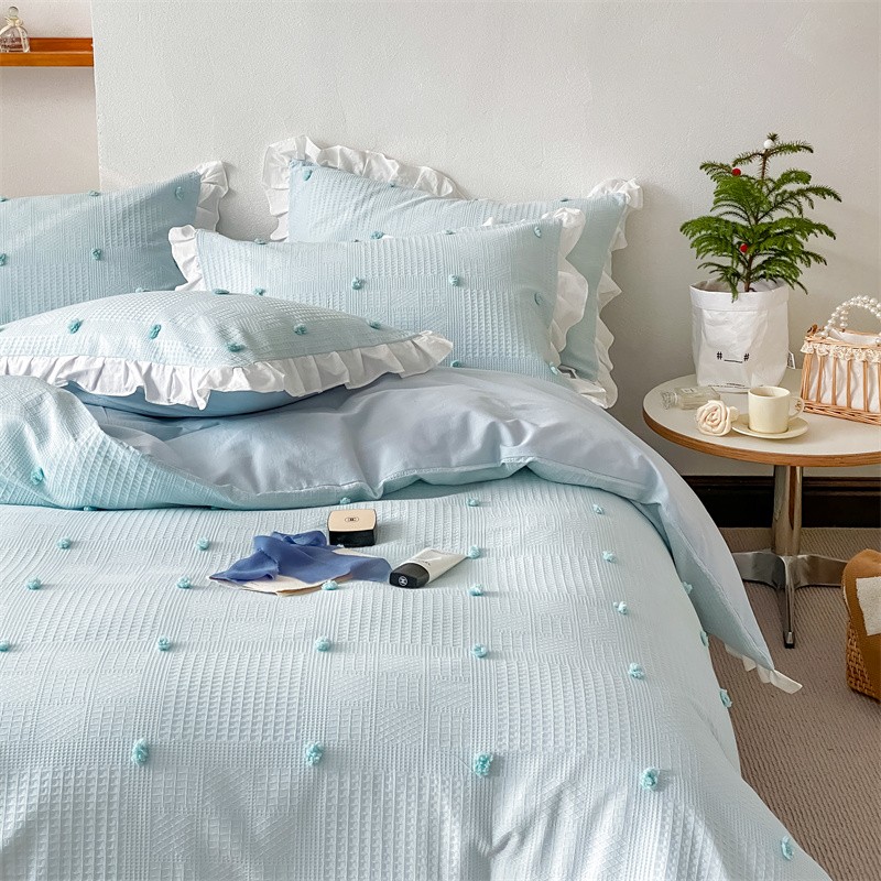 (总)柚子YOUTH 225新款全棉双层纱球球款四件套,薄荷绿条,波点霉霉,波点小丑,蓝心,芊芊结,碎花点点