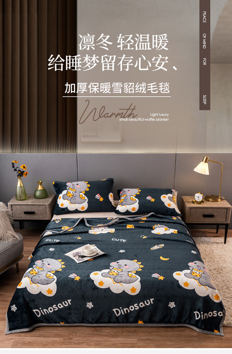 当前位置: 91家纺网 > 商品网购 > 毛毯休闲毯绒毯 > 毛毯 > 慕尚 2025新款雪貂绒四季毛毯 小恐龙