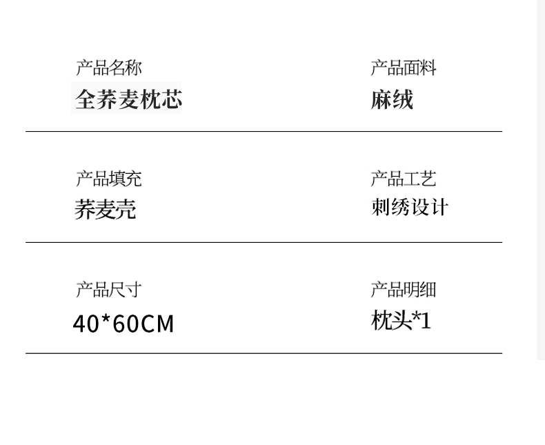 商品名称:纯荞麦枕40x60cm 保健枕头中低护颈枕芯 千鸟格纯荞麦枕