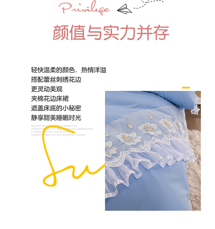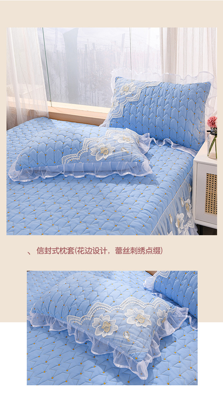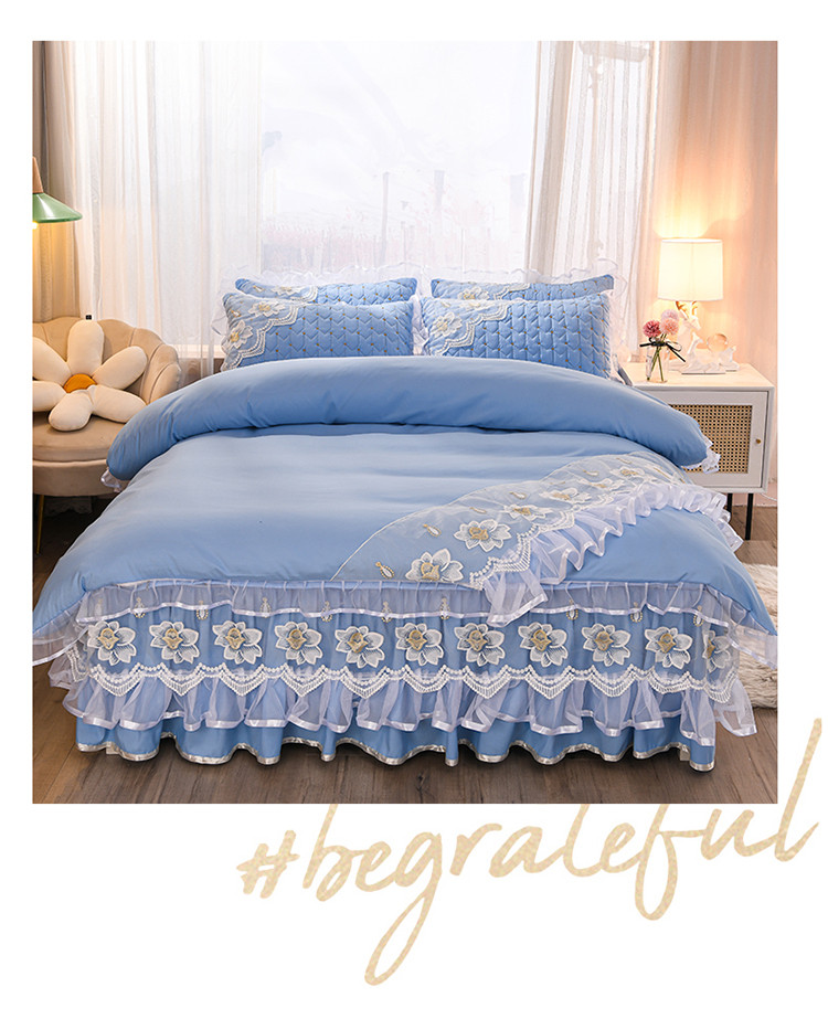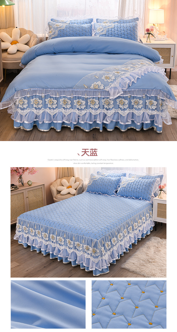 当前位置: 91家纺网 > 商品网购 > 床品套件 > 四件套 > 普通磨毛四件套 > 瑞宝2025新款花海磨毛夹棉床裙款花边四件套系列 花海-天蓝
