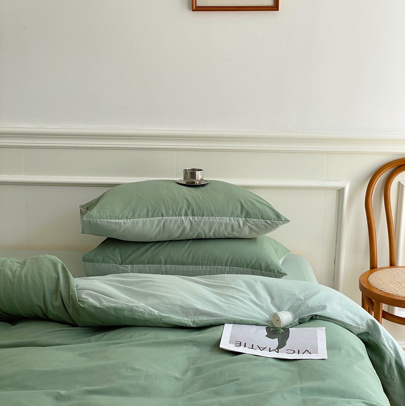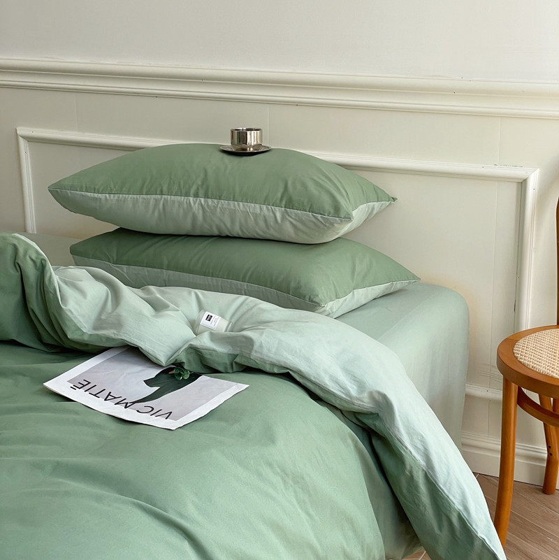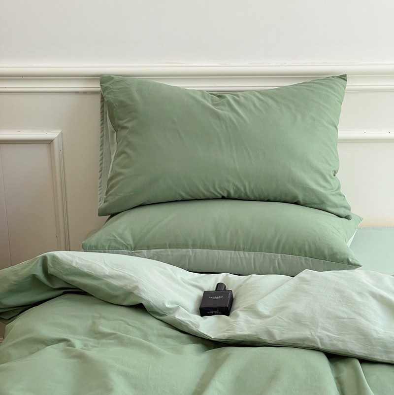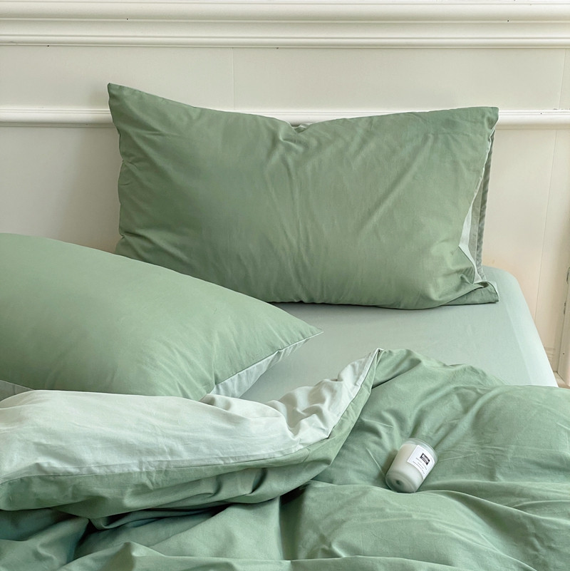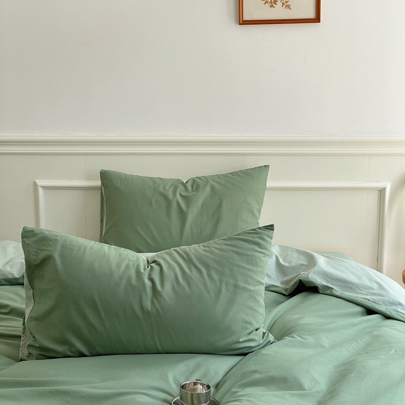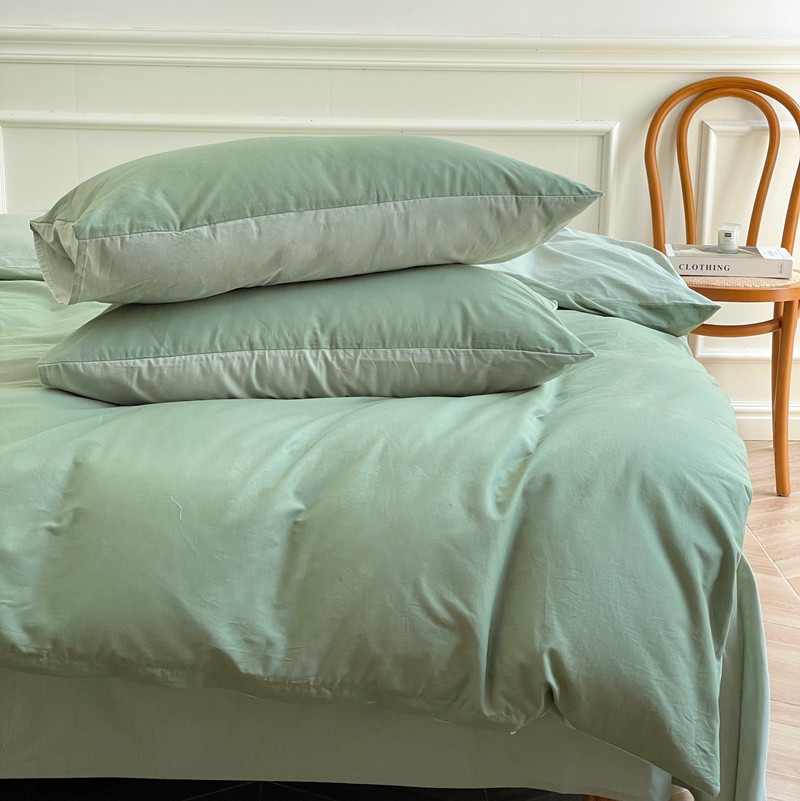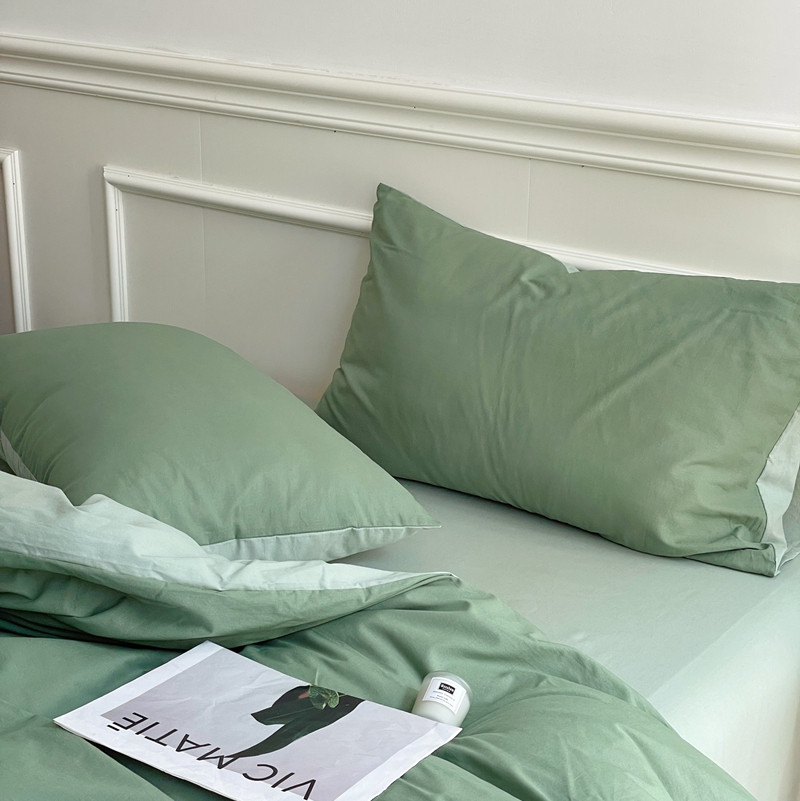 当前位置: 91家纺网 > 商品网购 > 床品套件 > 四件套 > 水洗棉四件套 > 窝米 2022夏季新品素色双拼水洗棉四件套 抹茶绿双拼