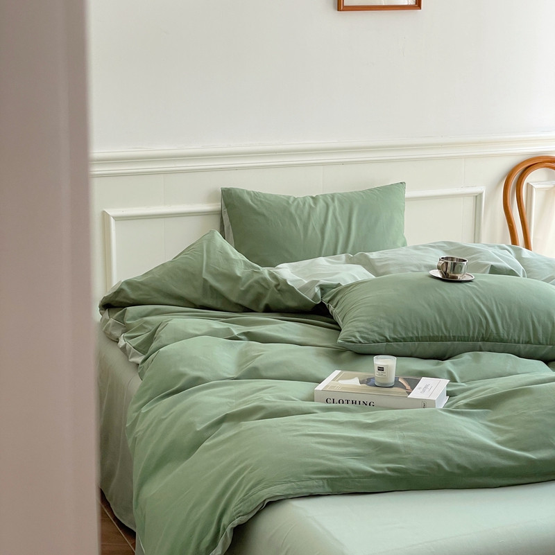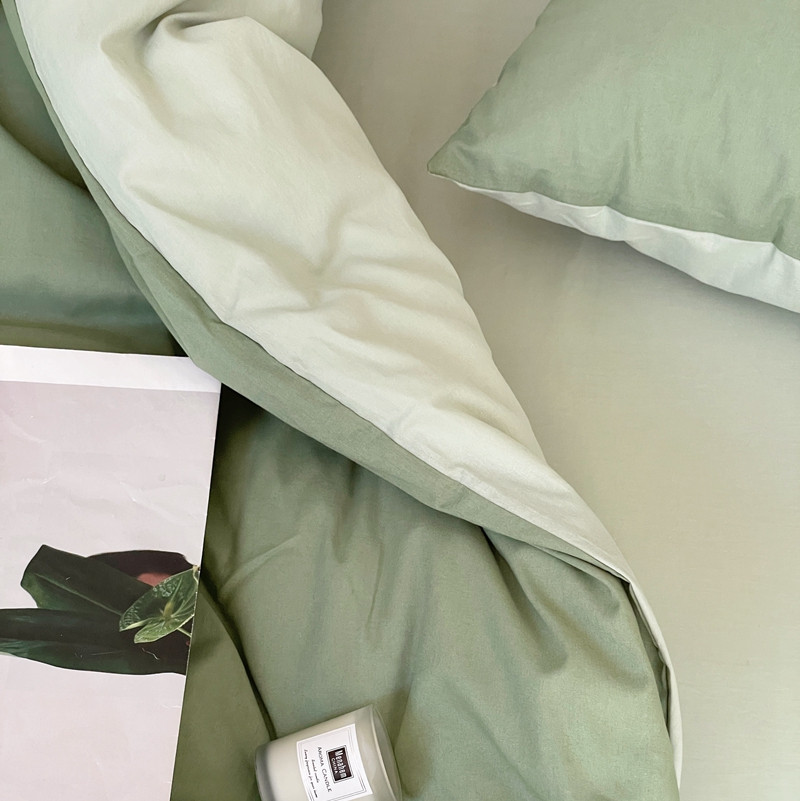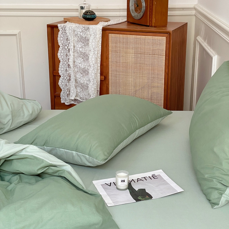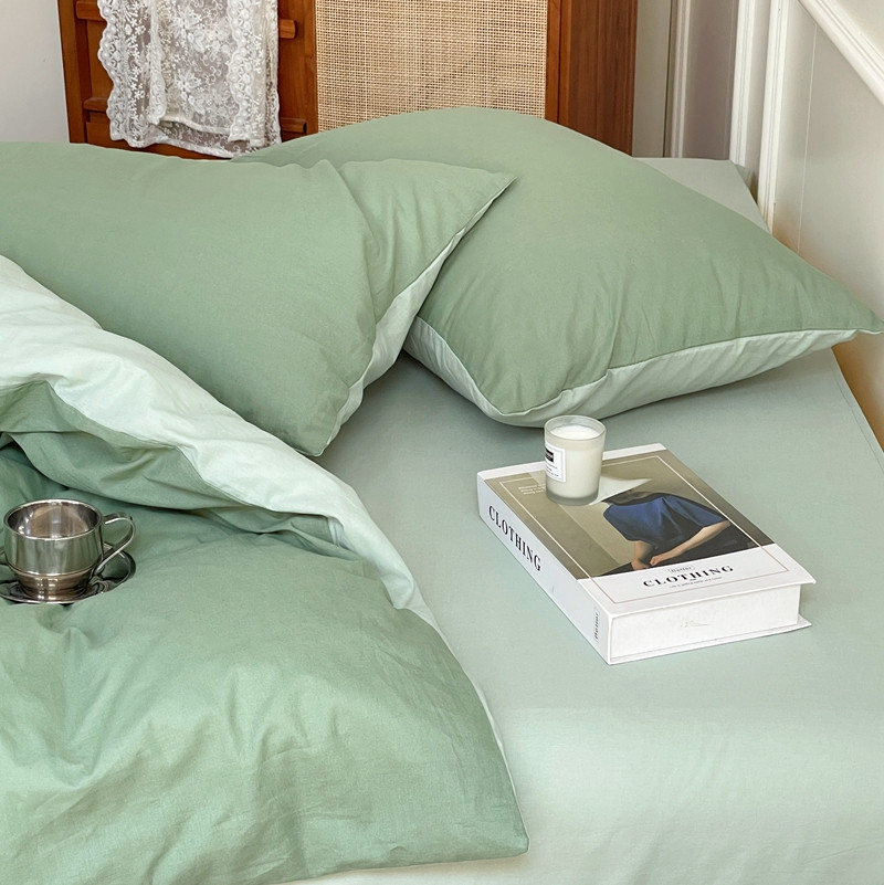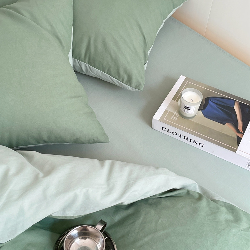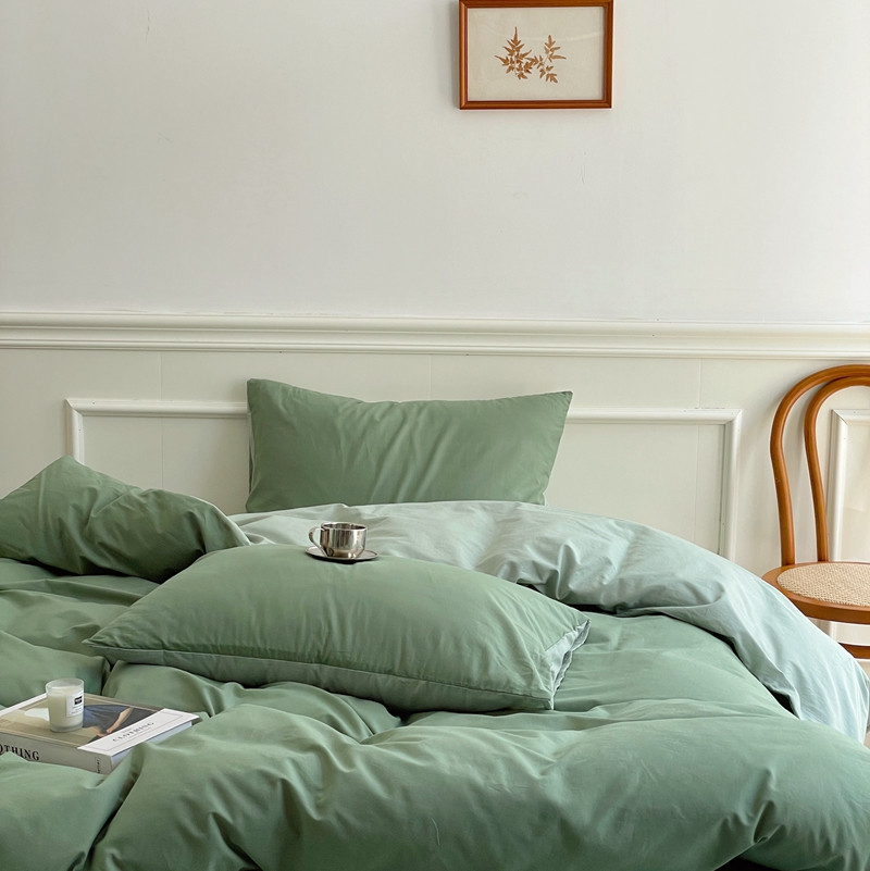当前位置: 91家纺网 > 商品网购 > 床品套件 > 四件套 > 水洗棉四件套 > 窝米 2022夏季新品素色双拼水洗棉四件套 抹茶绿双拼