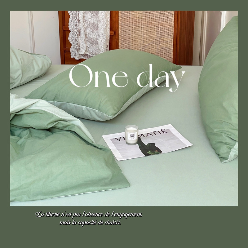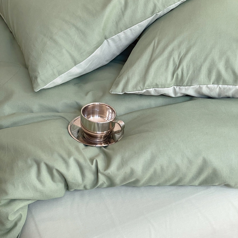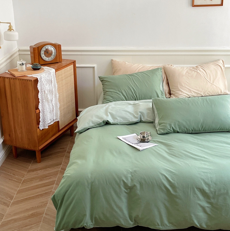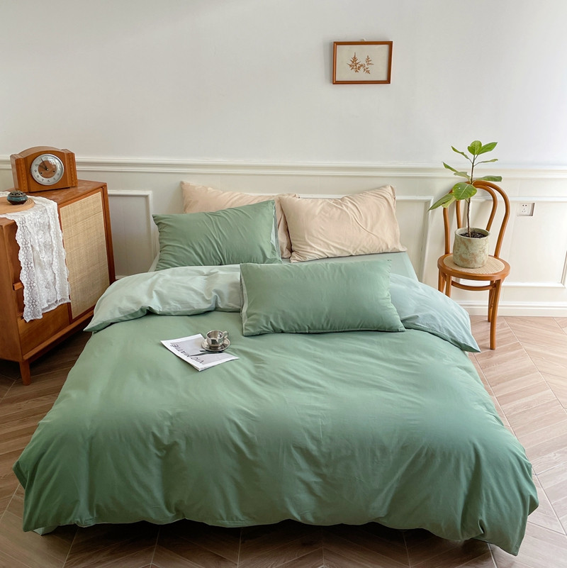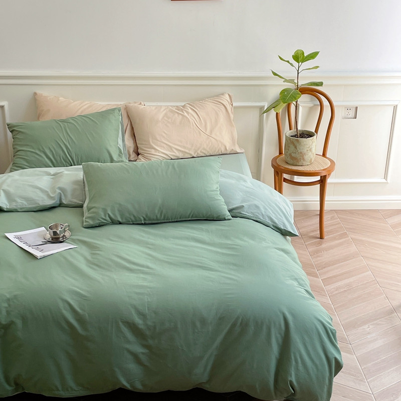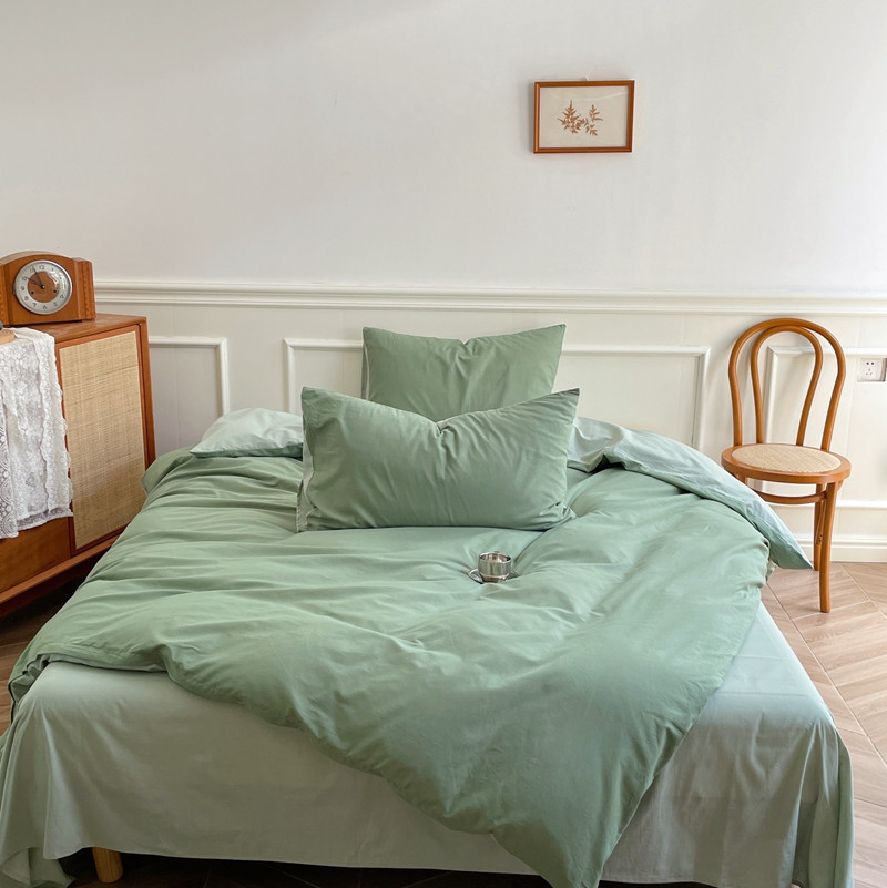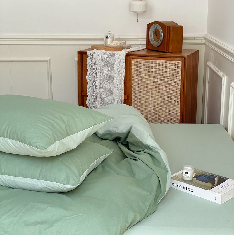 当前位置: 91家纺网 > 商品网购 > 床品套件 > 四件套 > 水洗棉四件套 > 窝米 2022夏季新品素色双拼水洗棉四件套 抹茶绿双拼