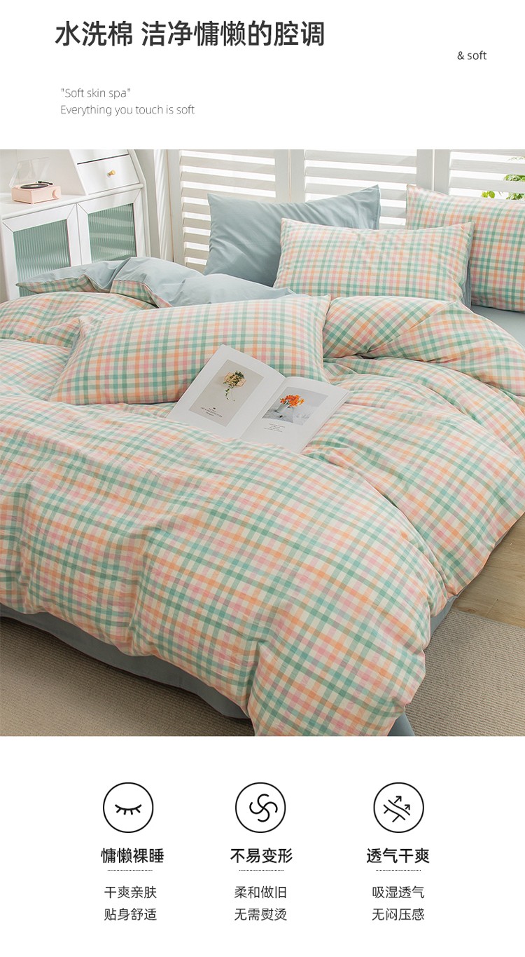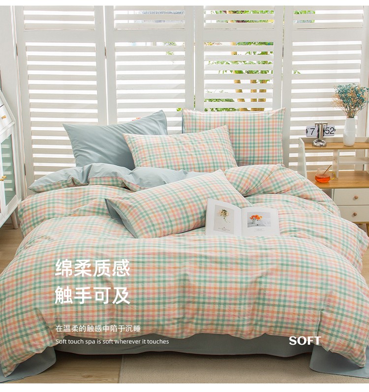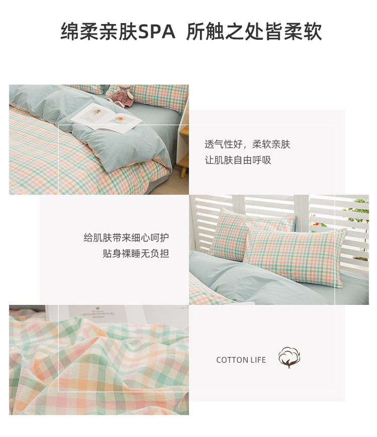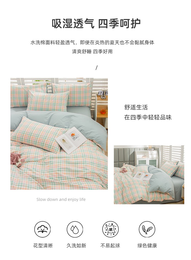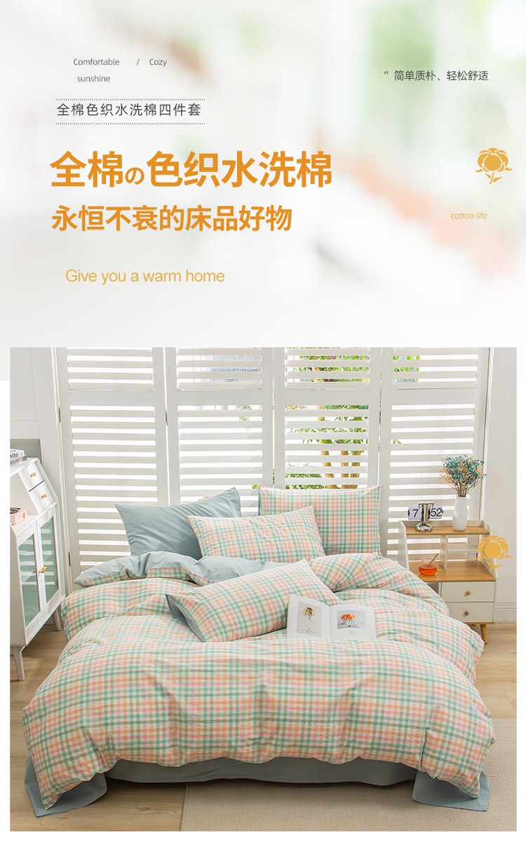当前位置: 91家纺网 > 商品网购 > 床品套件 > 四件套 > 水洗棉四件套 > 柠萌家居 2022新款A类全棉色织水洗棉无印风格四件套 冰激凌绿