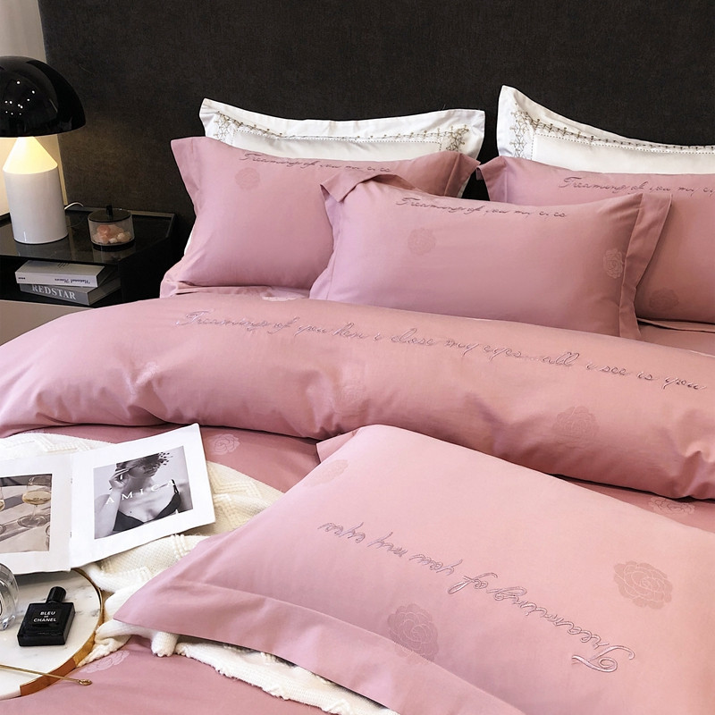 总玖玖爱家纺 纯棉100支贡缎长绒棉刺绣被套三件套四件套加大四件套,白色,高级灰,卡其,蓝灰,绿色,浅桔,深蓝,紫豆沙