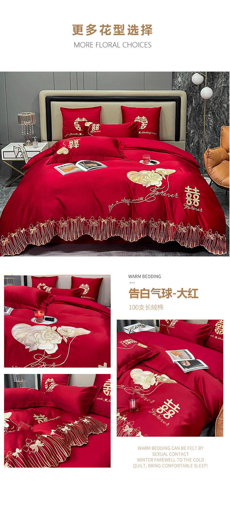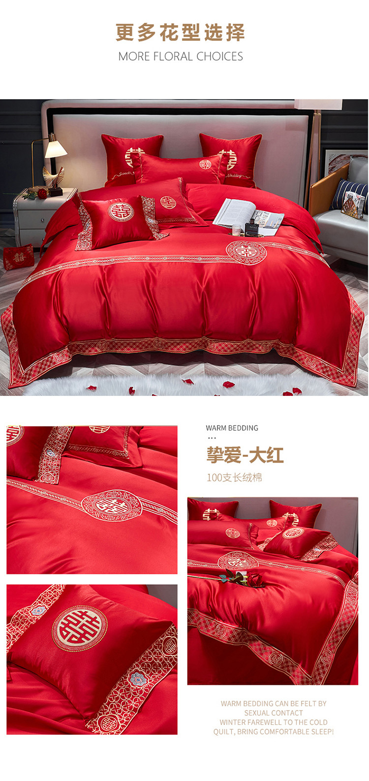 (总)甜咪咪婚庆 2025新款50支长绒棉全棉婚庆床单床盖四件套多件套刺绣工艺,洛可可,爱恋小熊,爱意久久,多子多福,花田喜事,节节高升,克拉恋人,浪漫情怀,怦然心动红,怦然心动玉,甜心玫瑰,温莎公主,伊甸园,醉红妆
