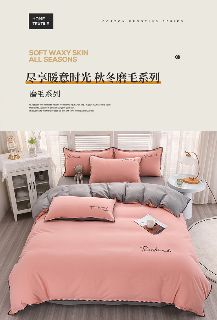 当前位置: 91家纺网 > 商品网购 > 床品套件 > 四件套 > 普通磨毛四件套 > 金麦 2022新款秋冬磨毛四件套-简系列 简-浅豆沙