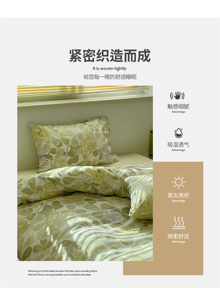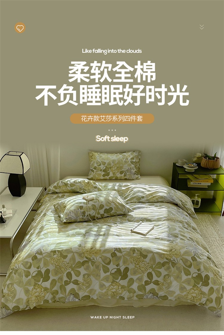 窝米 2022秋季新品全棉13370花卉系列四件套 花漾