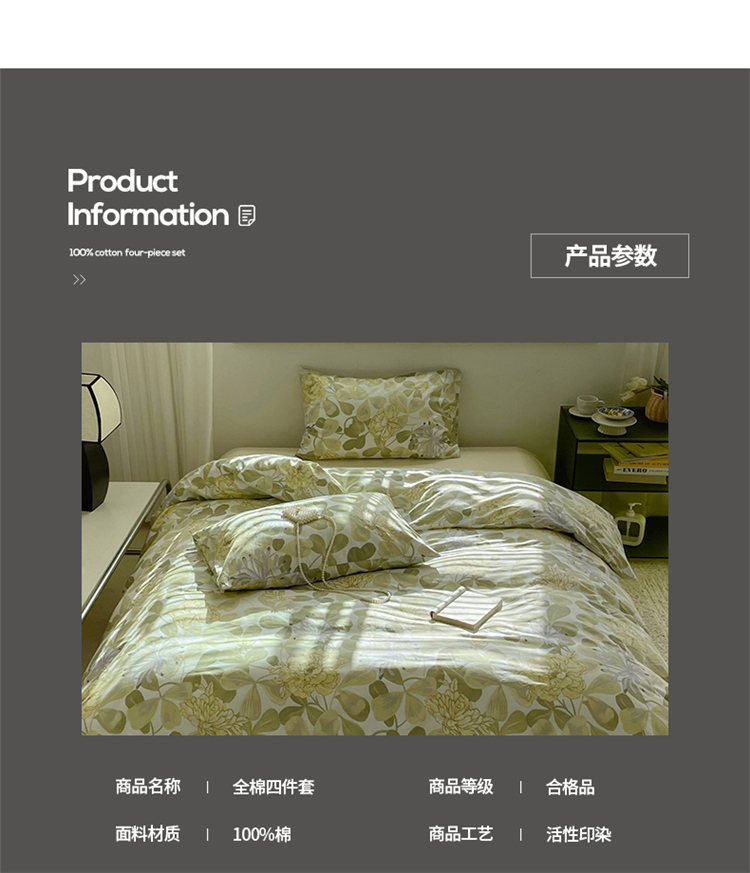 商品名称:窝米 2022秋季新品全棉13370花卉系列四件套 花漾