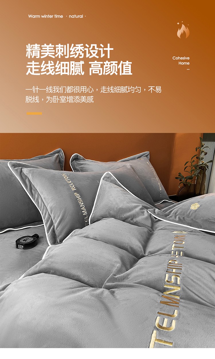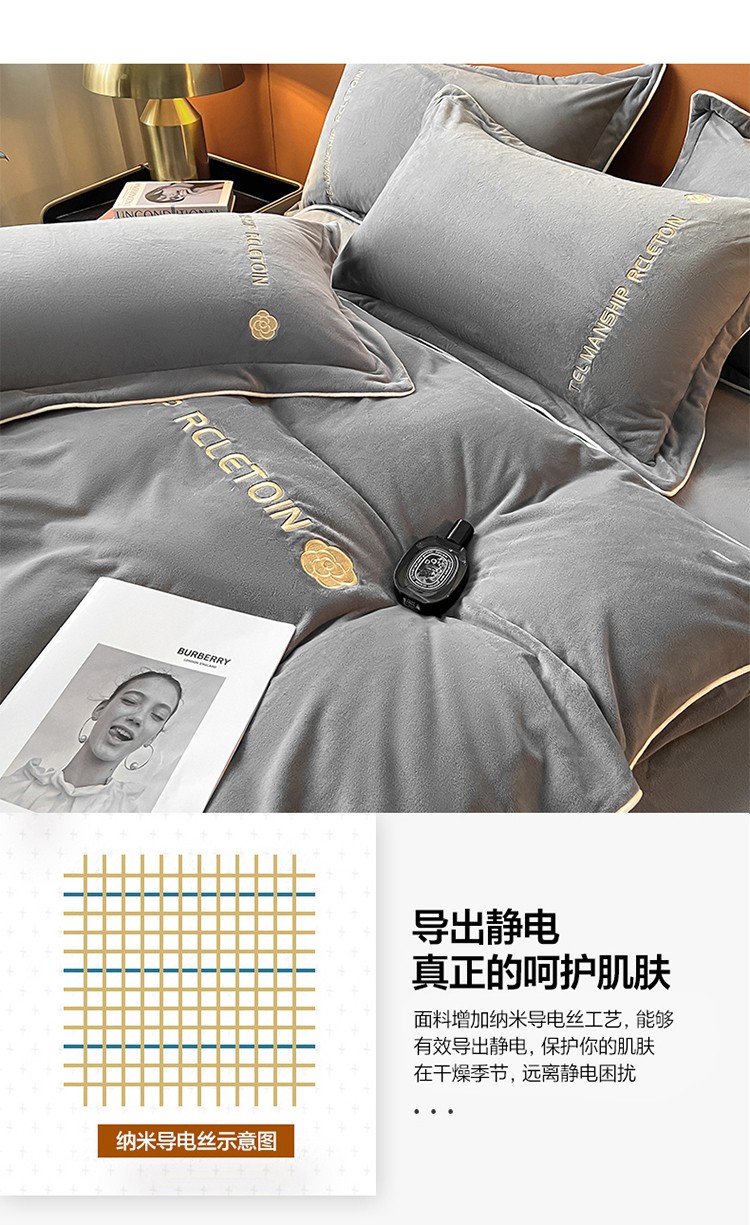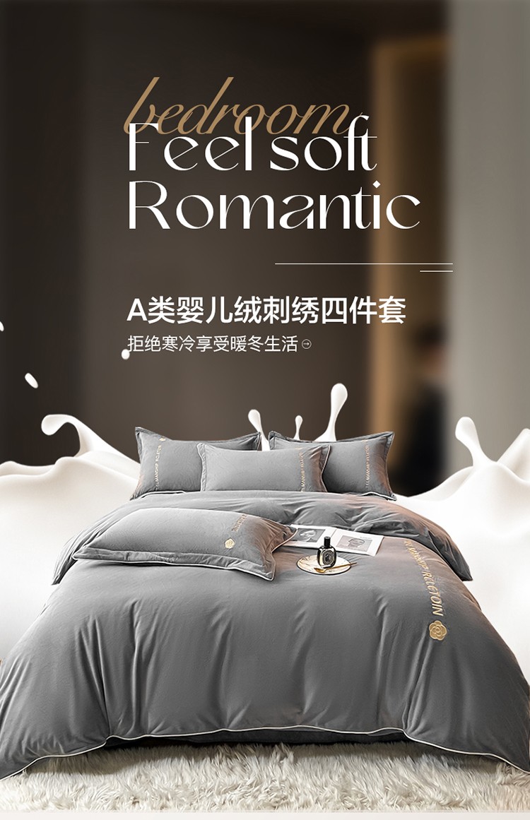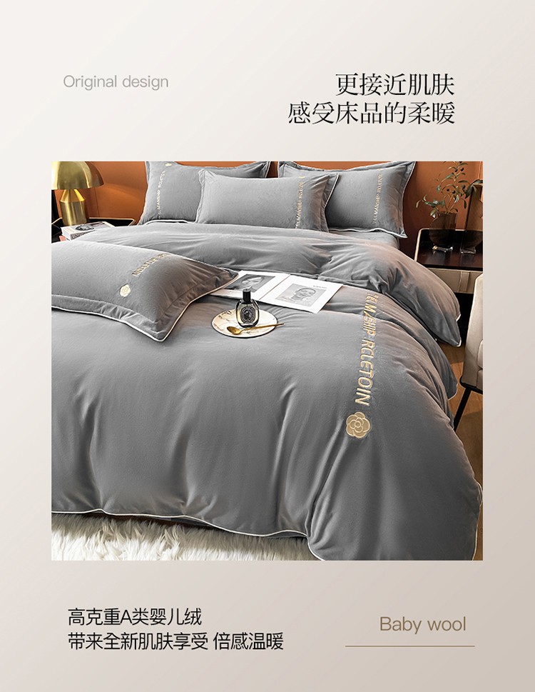 商品名称:嗯呢 2023新款A类高克重轻奢刺绣婴儿绒四件套 高级灰