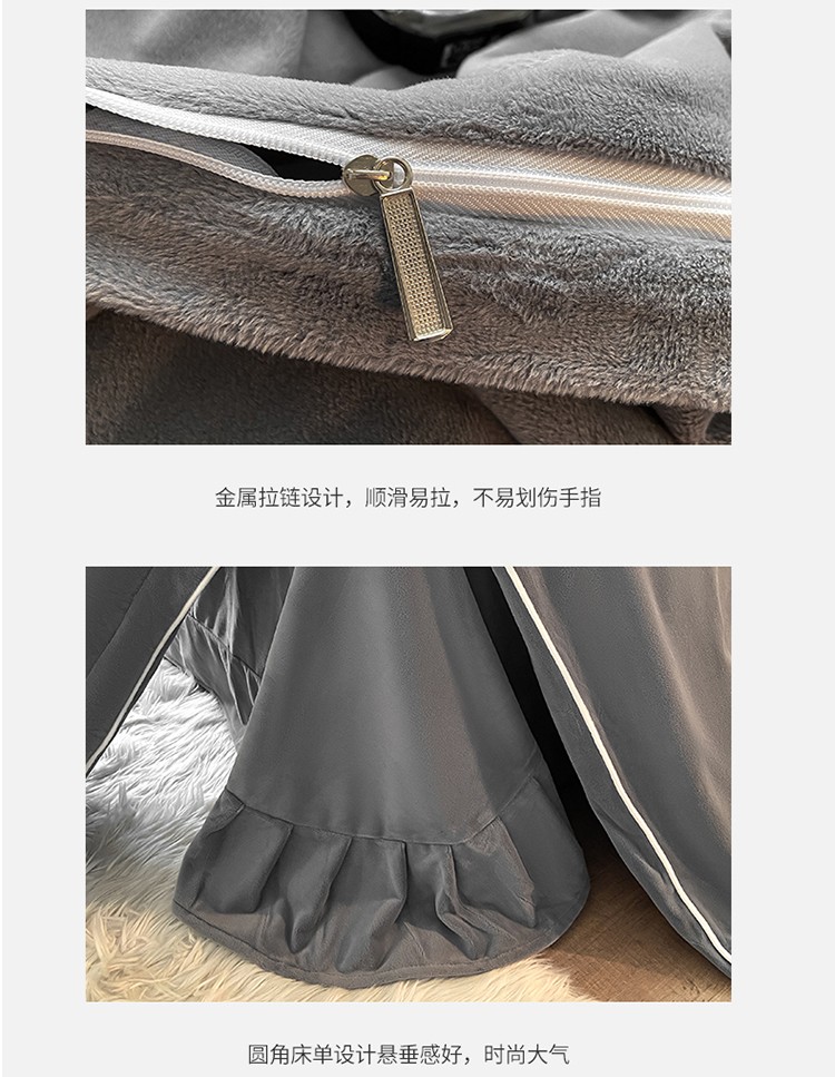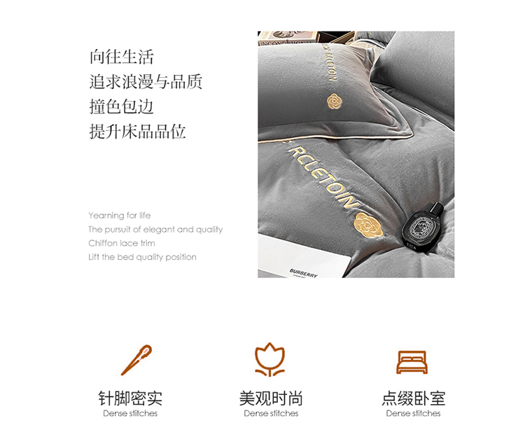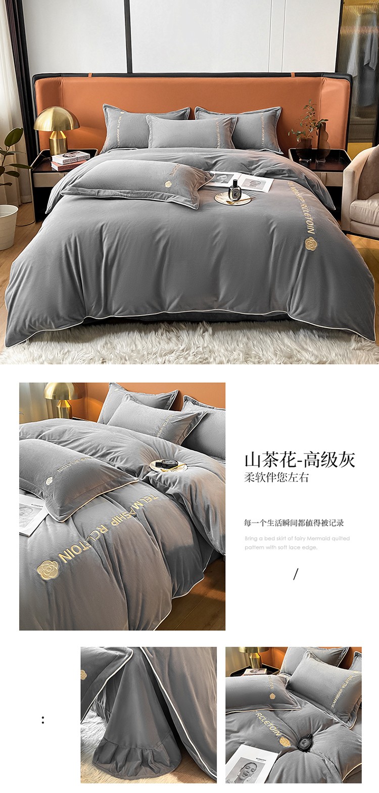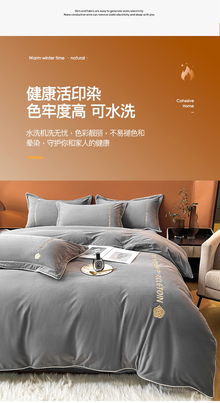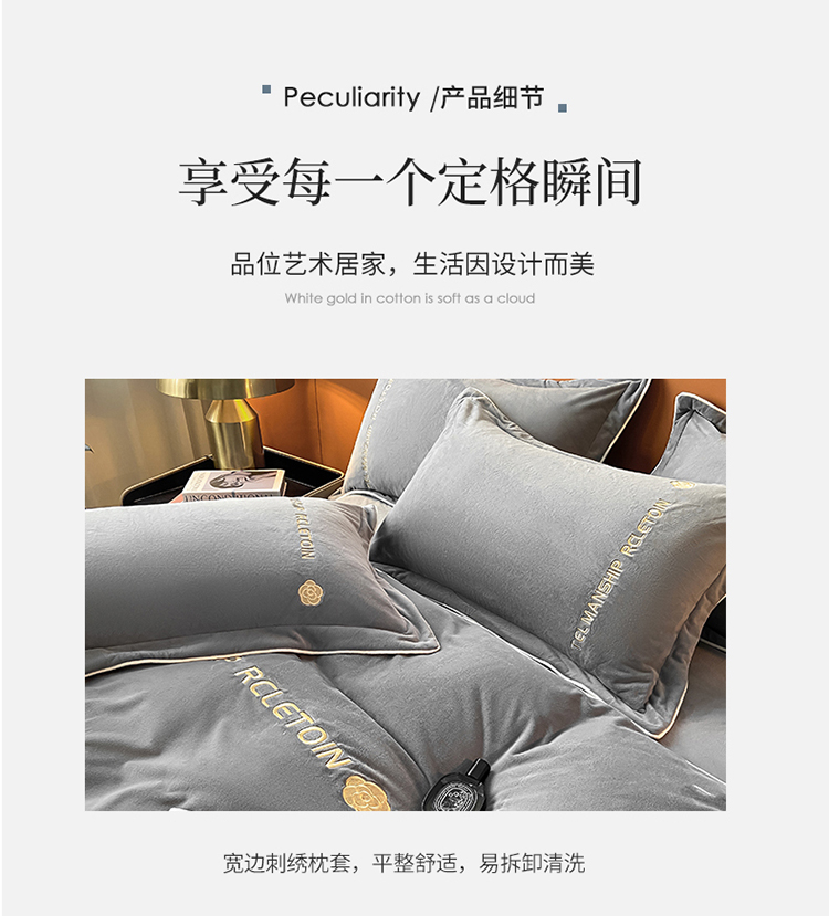 商品名称:嗯呢 2023新款A类高克重轻奢刺绣婴儿绒四件套 高级灰