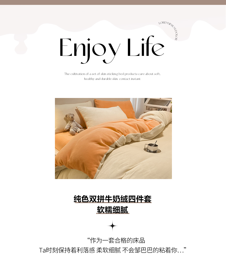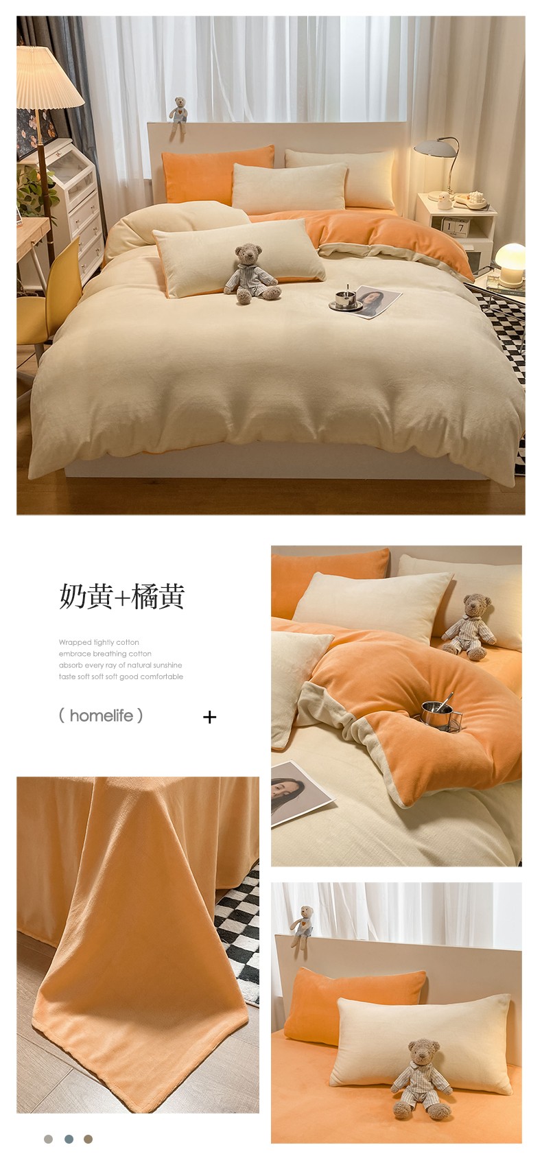 当前位置: 91家纺网 > 商品网购 > 床品套件 > 四件套 > 牛奶绒四件套 > 古吉梦2022款+纯色双拼牛奶绒四件套双拼牛奶绒-奶黄+橘黄