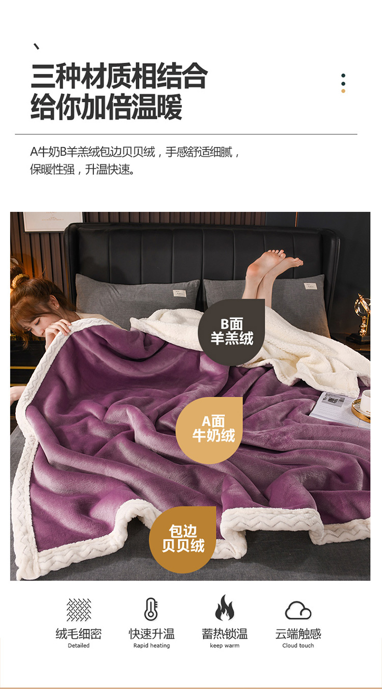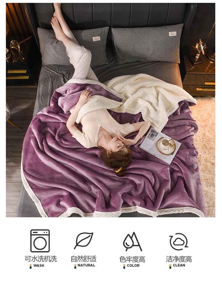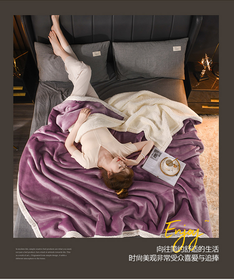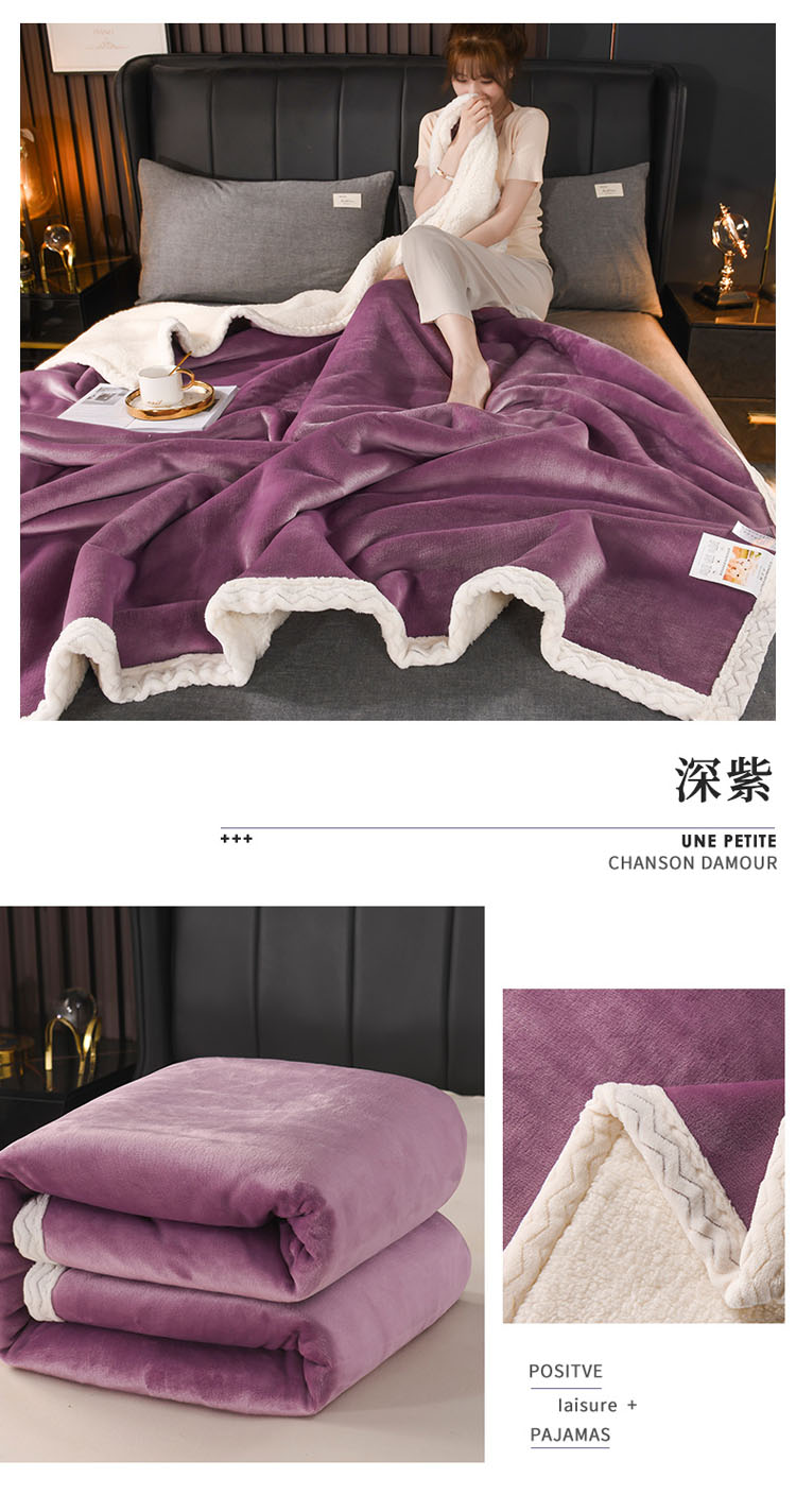 商品名称:席之家2023款纯色羊羔绒复合毛毯休闲毯盖毯空调毯子 深紫