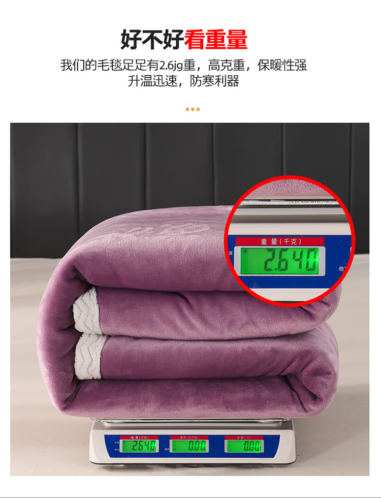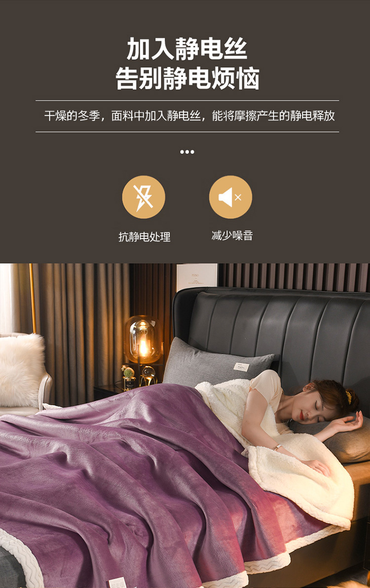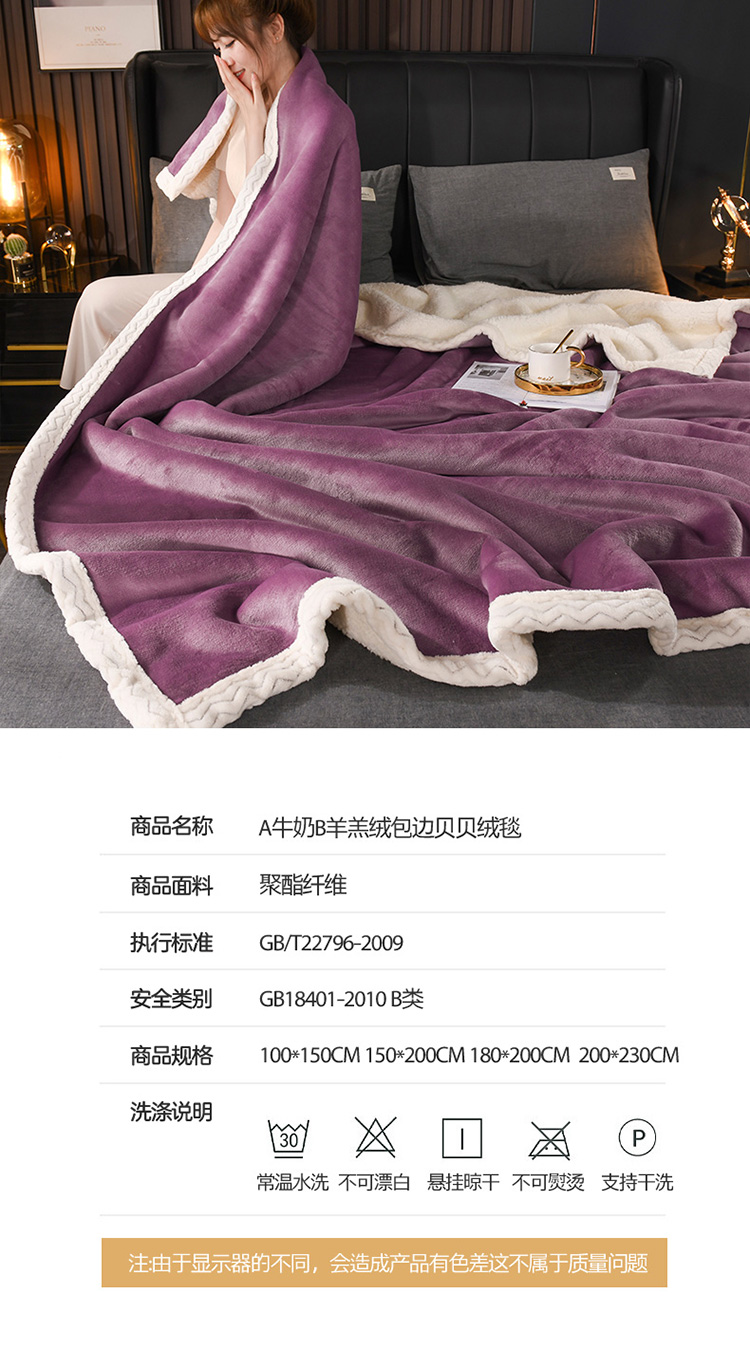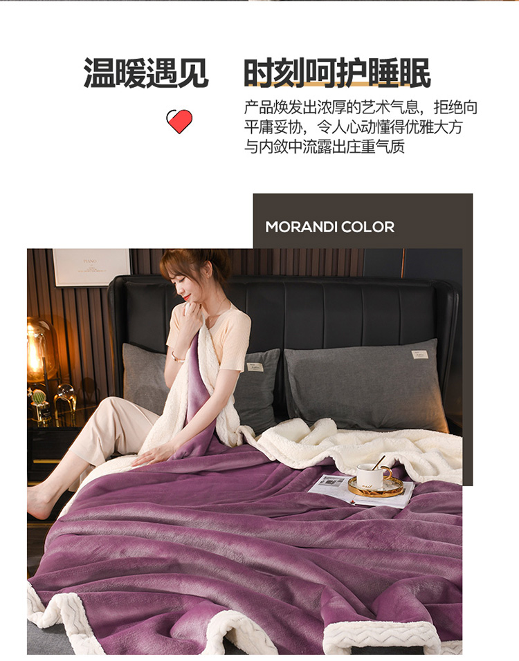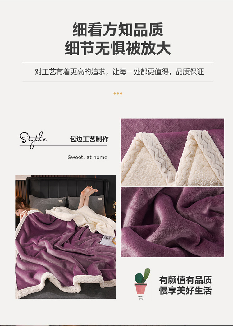 商品名称:席之家2023款纯色羊羔绒复合毛毯休闲毯盖毯空调毯子 深紫