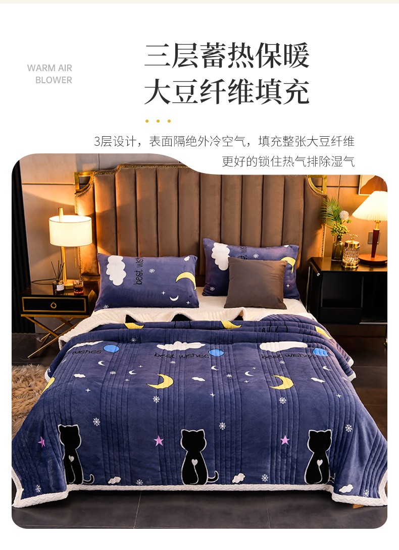 圣楚 2024双面绒羊羔绒牛奶绒毛毯多功能午睡毯盖毯直播 晚安喵喵