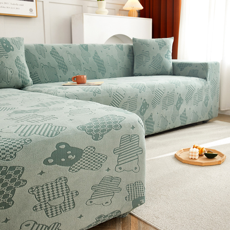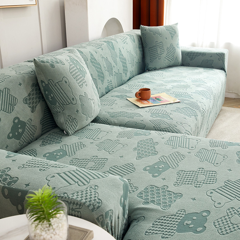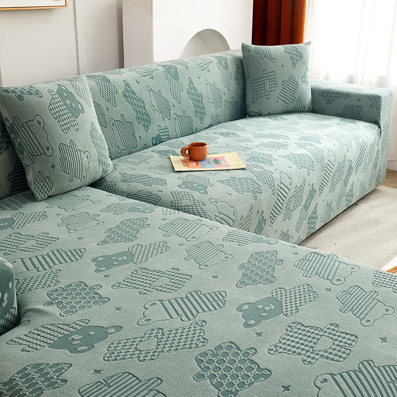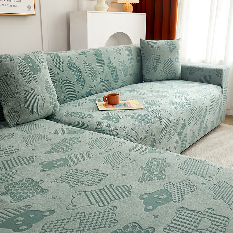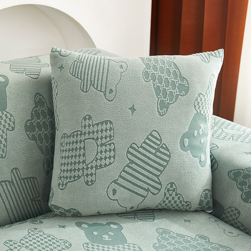 逐日沙发套 2023新款阳离子雕花沙发套 饼干熊 豆绿