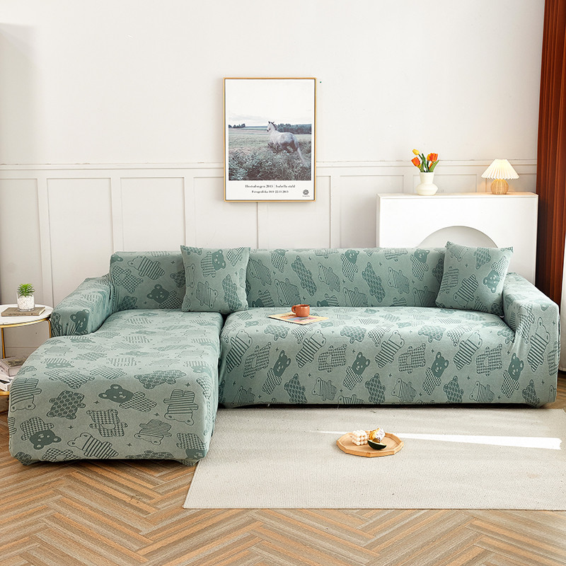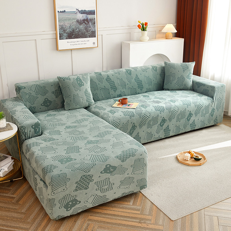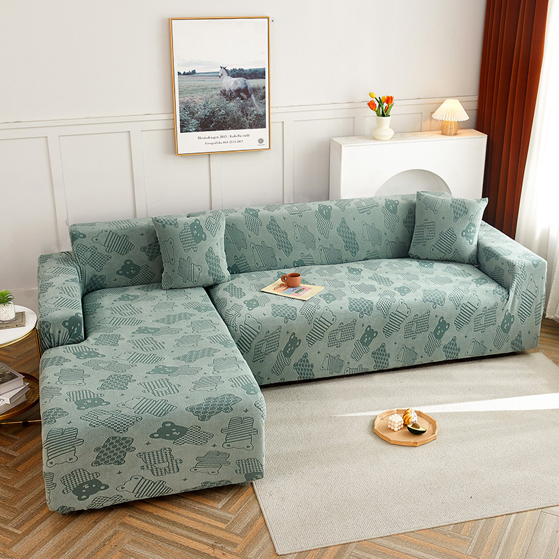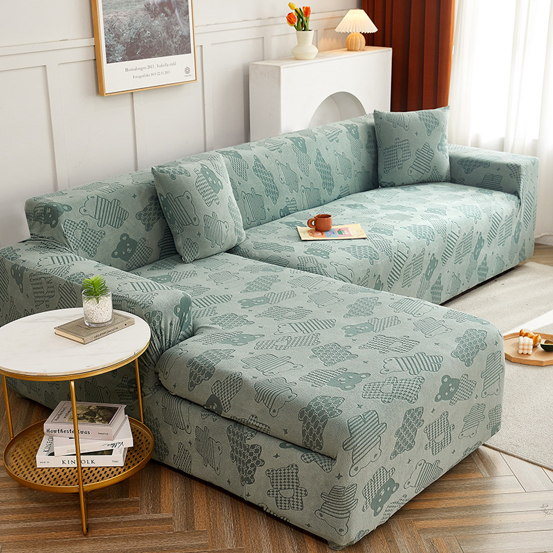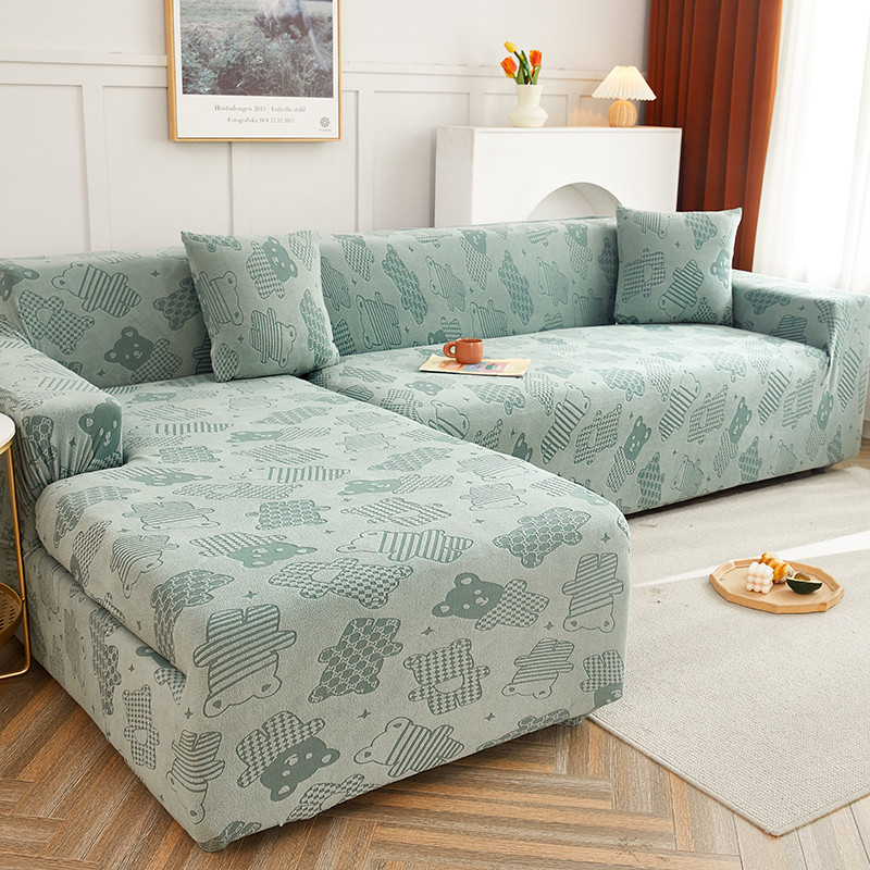 逐日沙发套 2023新款阳离子雕花沙发套 饼干熊 豆绿