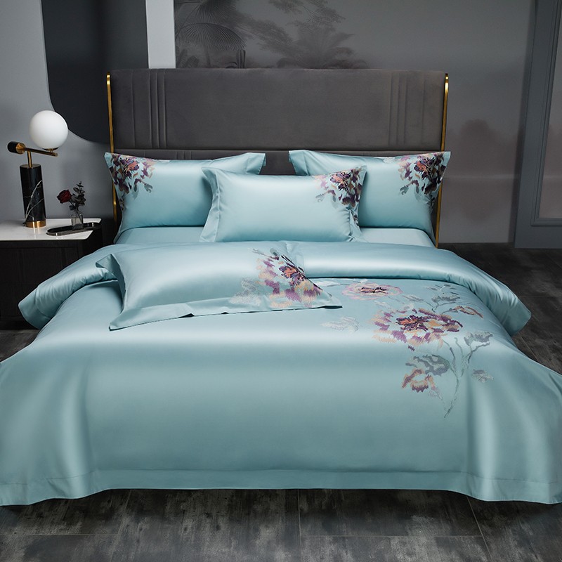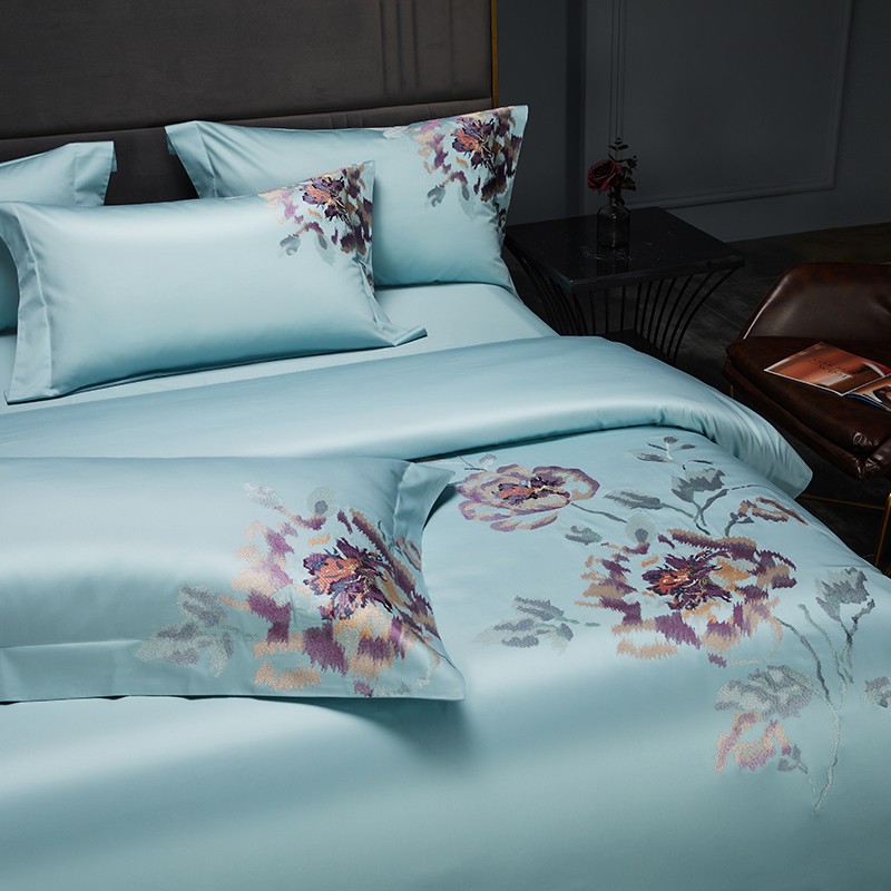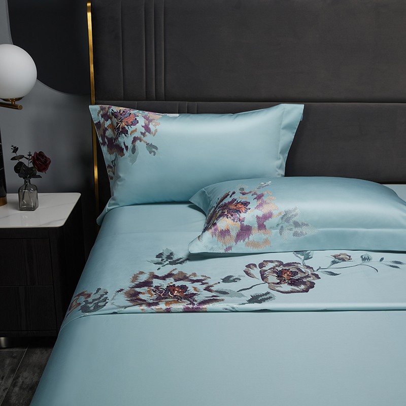 缔缦 2022新款100s澳棉全工艺秋冬居家四件套-花影伊人 兰