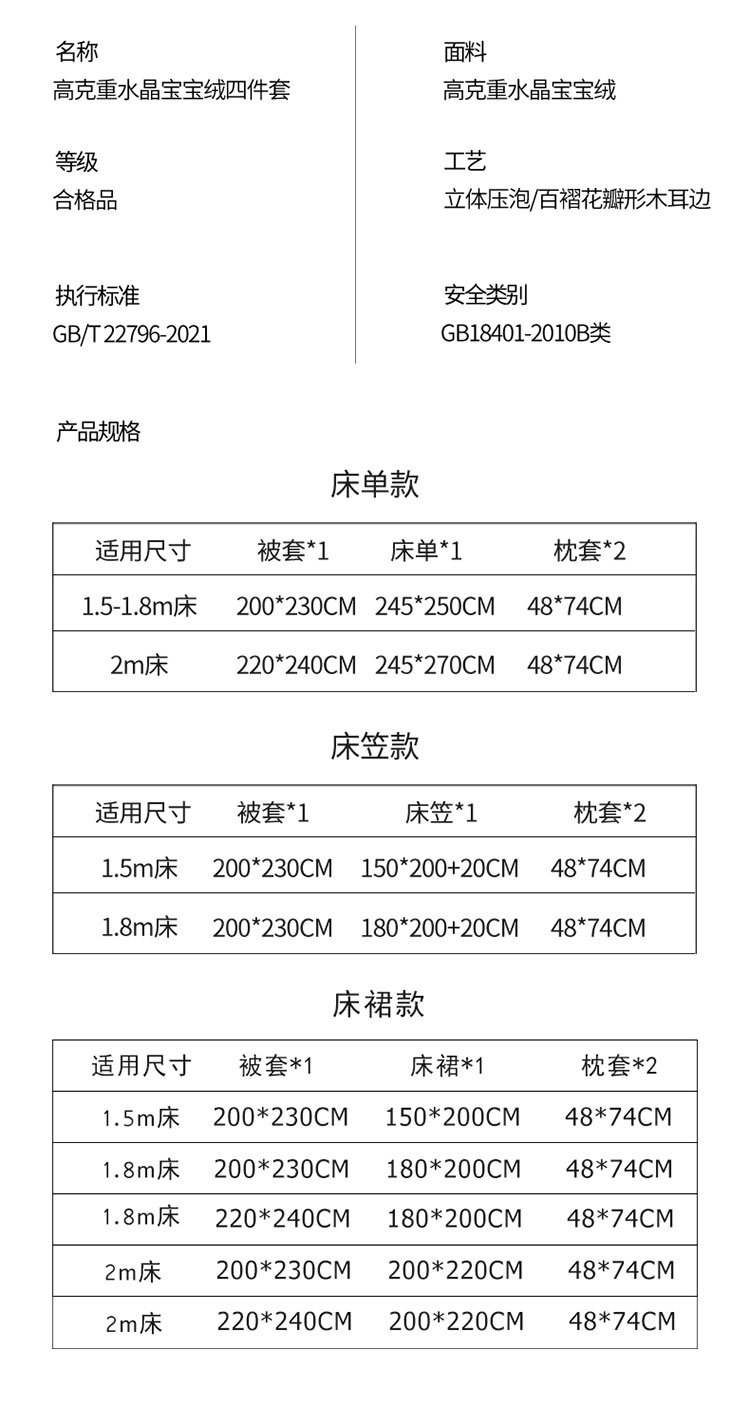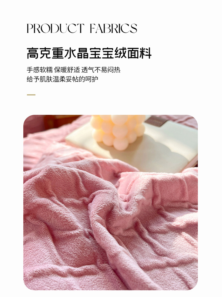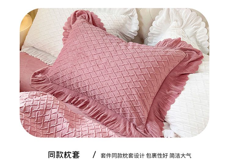 商品名称:惯盈高克重水晶绒宝宝绒四件套压泡荷叶边四件套-泡泡格红豆沙