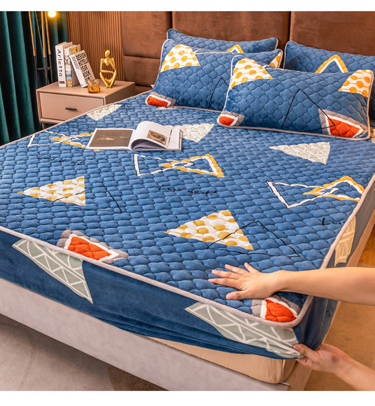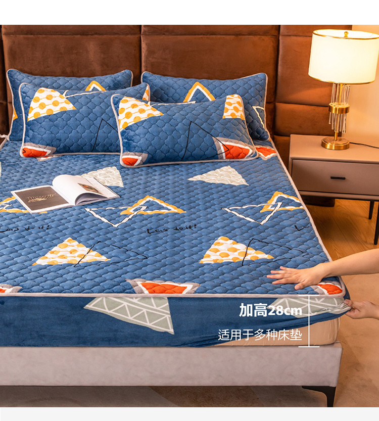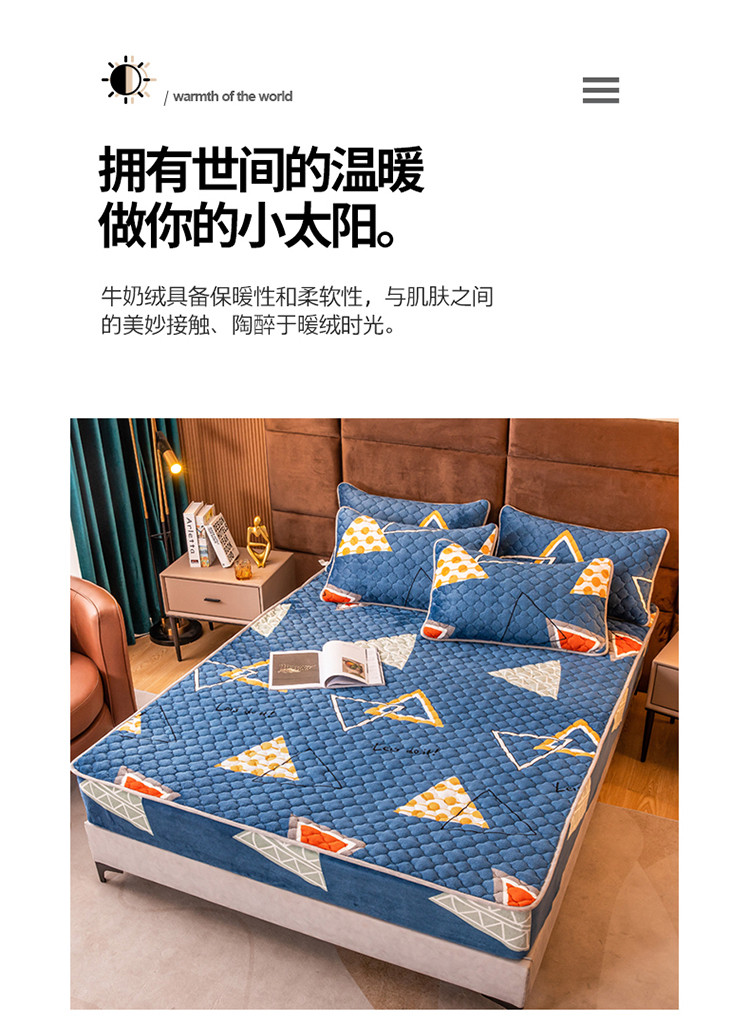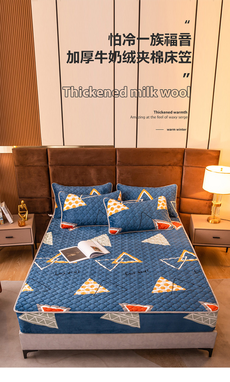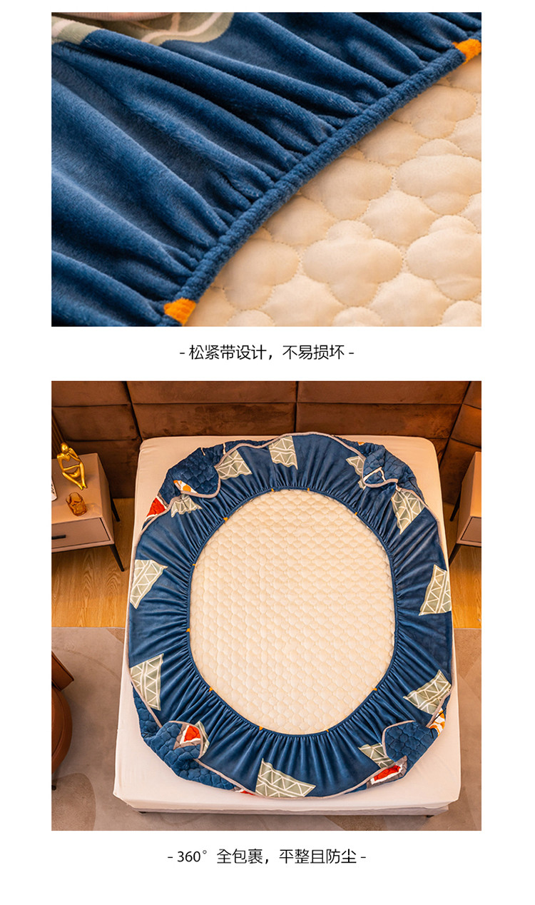 美莱 2022年夹棉加厚牛奶绒床笠单件三件套直播爆款 奇妙爱恋-兰